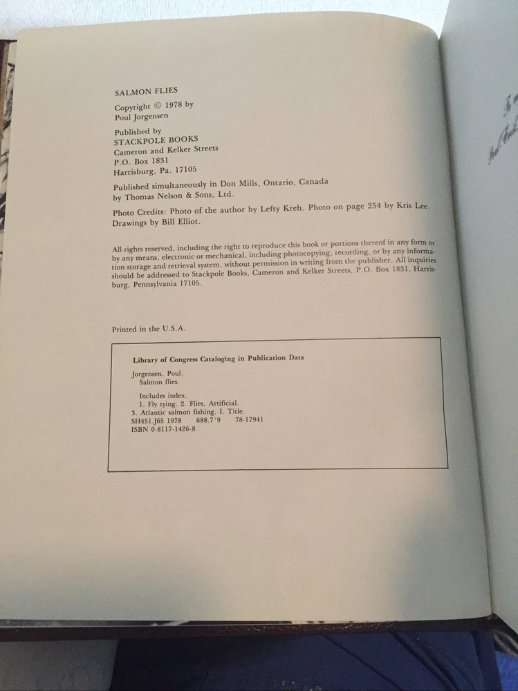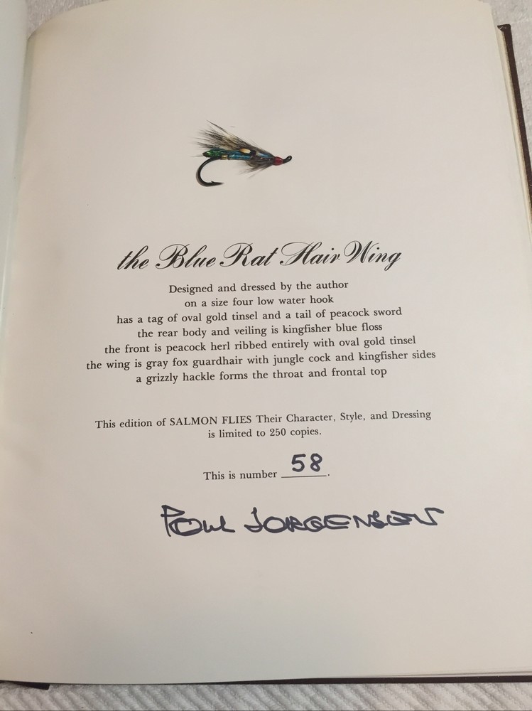 Up for sale is a Deluxe Limited edition of Salmon Flies: Poul Jorgensen 1978 First Edition With Blue Rat Fly.it is Number 58 of 250 copies signed by the author. Photos are of the actual item offered. Book will be Shipped expedited shipping insured