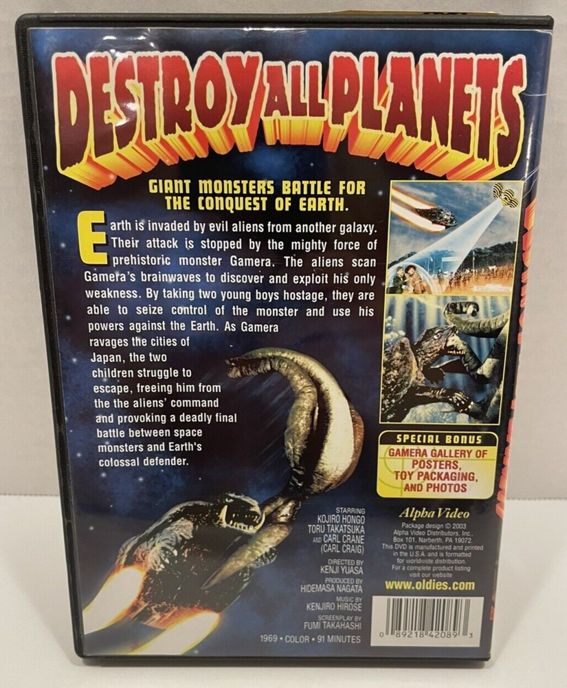 Get ready for an incredible science-fiction adventure with the Destroy All Planets DVD. Starring Kojiro Hongo and Toru Takatsuka, this classic movie is a must-have for any fan of the genre. Directed by Noriyaki Yuasa, this masterpiece is a great addition to your collection. This DVD comes in English language and is produced by Hidemasa Nagata. The movie is categorized under DVDs & Blu-ray Discs and Movies & TV, and is released by Alpha Video Studio. Don't miss out on the action-packed adventure of Destroy All Planets.