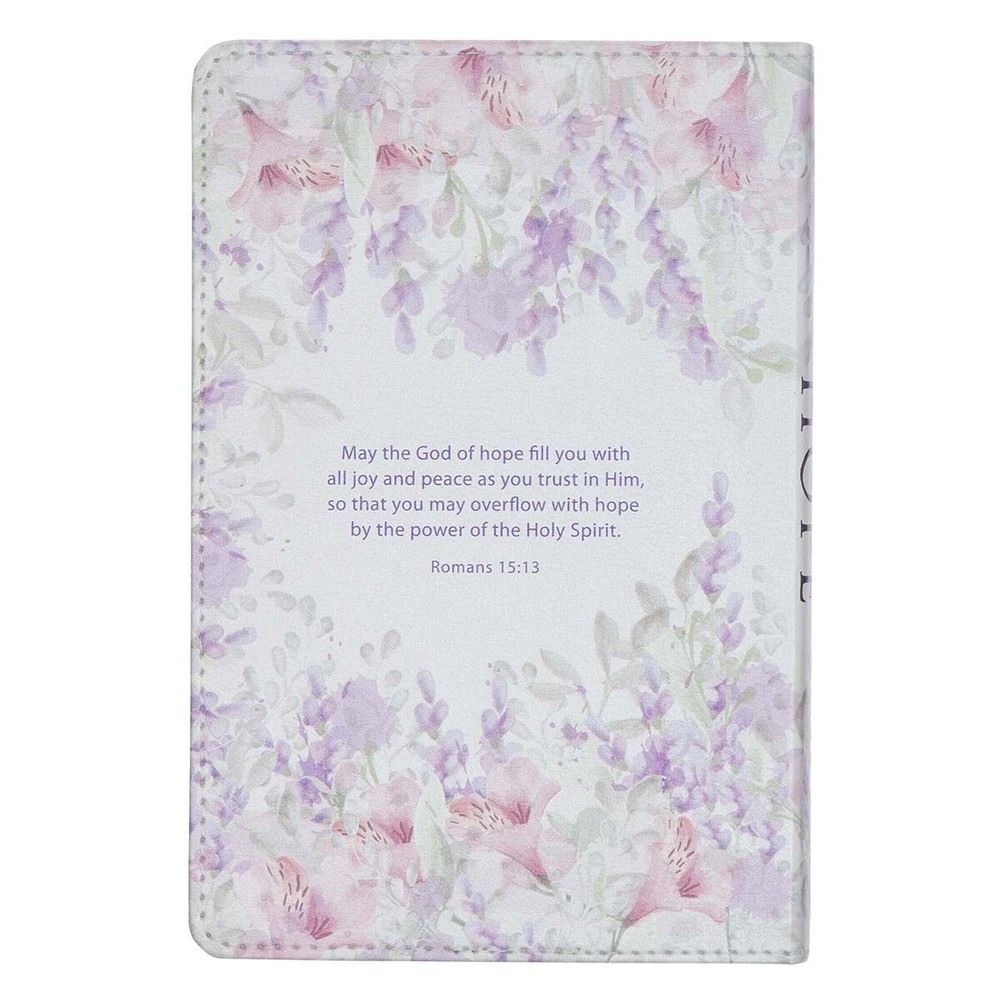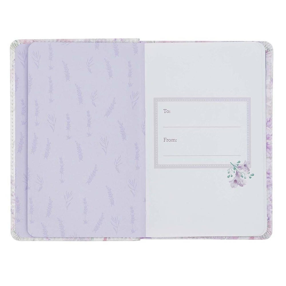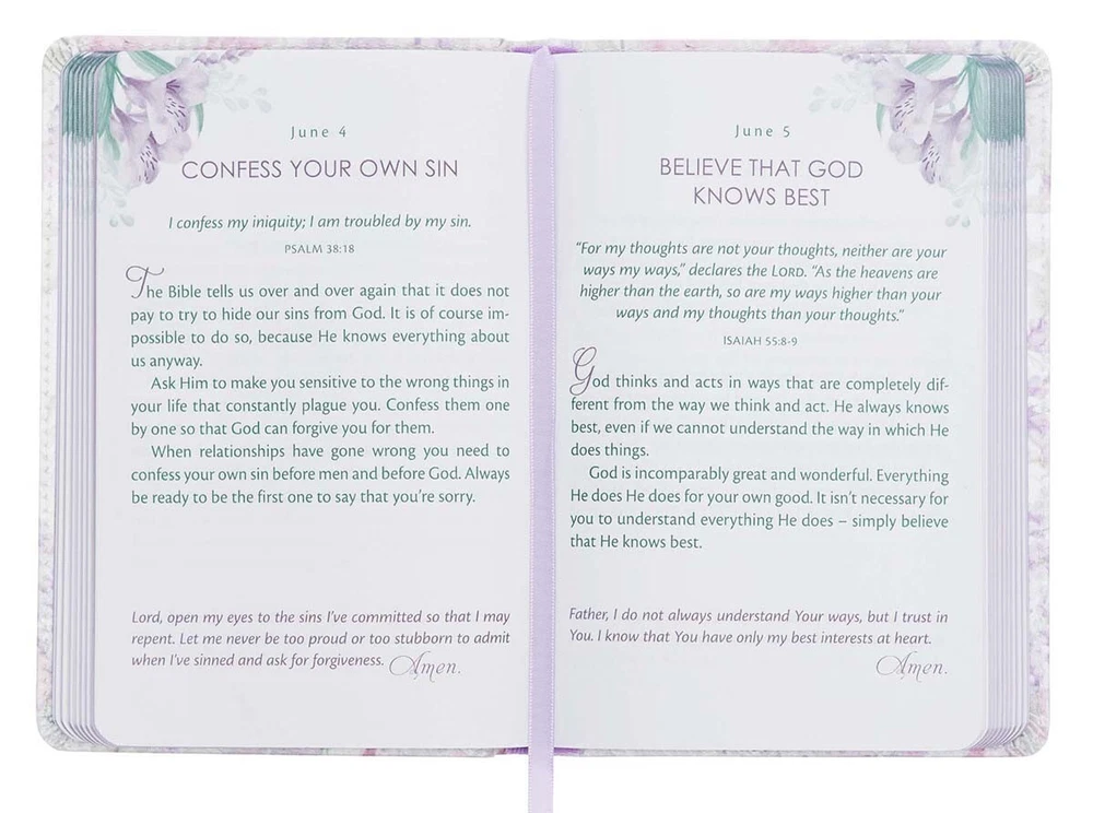 A Heartbeat of Hope Devotional for Women offers short daily devotions to encourage the habit and spiritual discipline of spending time with God. The white pearlized cover of the daily devotional is decorated with a bouquet purple lavender sprigs and pink lace Azaleas. The front cover features the title in fuchsia pink foil. The back cover repeats the same floral motif and includes a blessing from the book of Romans, printed in purple. The devotional follows a calendar year, and each entry is dated with the month and day. The year is not mentioned so you can reuse the inspirational content year after year. Each entry offers a Scripture verse, short devotional and concludes with a prayer. Each colorful page features a sweet floral image on the top corners. The text is printed in easy to read dark green and purple. White topstitching reinforces the edges and rounded corners of the devotionals cover. Metallic pink gilt-edging on the page edges complements the title and a soft purple satin ribbon marker marks your page. A presentation page in the f front of the devotional allows you to address it and give it as a gift. A Heartbeat of Hope Devotional for Women is the perfect devotional to give as a meaningful Mother's Day Gift, Christmas Gift or Birthday Gift, particularly for a friend who is new to the faith, providing her with valuable support and guidance along their spiritual journey. ♥ Title: A Heartbeat Of Hope Faux Devotional For Women ♥ Pearlized Faux Leather Cover ♥ Pink And Purple Floral Cover Design ♥ Flex-Cover ♥ Two-Color Interior Pages ♥ Purple Ribbon Marker ♥ Presentation Page For Gift Giving ♥ Gilt Edged Page(s) ♥ Page(s): 366 ♥ Height and Width: 7" x 4.5" x 0.9" (178 x 114 x 23 mm) ADDITIONAL INFORMATION *********************************** PROCESSING & SHIPPING ♥ ALL items are “MADE TO ORDER” ♥ FULFILLMENT TIME 2 to 7 BUSINESS days ♥ STANDARD SHIP TIMES (if NO delays) 3-5 BUSINESS days AFTER fulfillment ♥ If devotionals are needed by a specific date please notify us BEFORE placing your order to ensure you will receive the item in a timely manner RETURN(S) / EXCHANGE(S) ♥ Returns, Exchanges and Cancellations are NOT ACCEPTED ♥ Contact us with ALL questions BEFORE purchasing ♥ We will NOT Refund/Replace items marked as delivered (if package has been marked as delivered but you have not received it, check with your local post office)