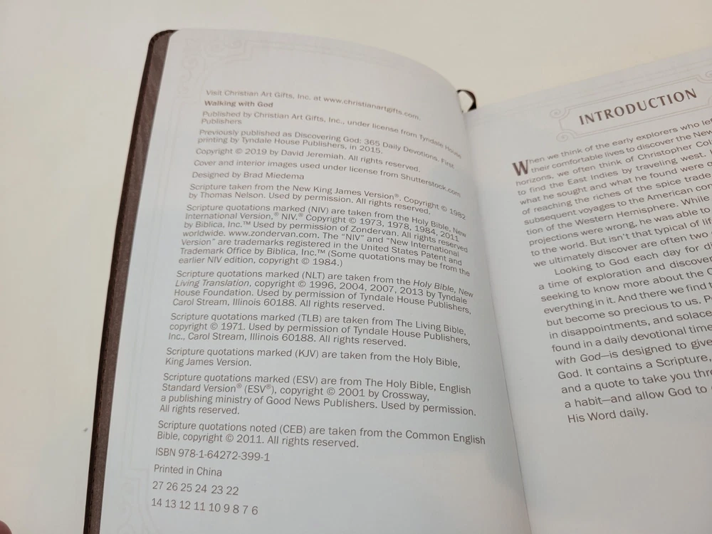 This leather-bound book titled "Devotional Walking with God" by David Jeremiah is a wonderful addition to any book collection. The large print format makes it easy to read for young adults and adults alike. It was published in 2021 by Christian Art Gifts Inc. and has 382 pages. The book is perfect for those interested in religion, as it covers general topics in the genre. Its features include large print, making it easier to read for those who may have difficulty with smaller print. The intended audience is young adults and adults, and it is in English. The book does not have any vintage characteristics and is in like-new condition. Please visit our store to see more items! Please review ALL photos & Item Description/Specifics for any questions regarding condition of this listing. Everything you see in the photos is included in this listing. We use professional grade shipping materials & our years of experience to ensure your order is properly packed & protected during shipping. If you are completely satisfied with your purchase, PLEASE leave us Feedback and save our store as a favorite seller. It helps our store rating and allows us to continue providing quality products for sale. If we have NOT completely satisfied you, PLEASE reach out to us before leaving less than Positive feedback, so that we may try to correct any issues. THANK YOU! We want to do our best to give you good quality service.