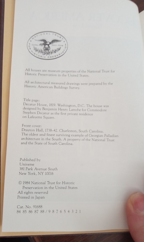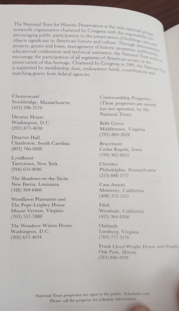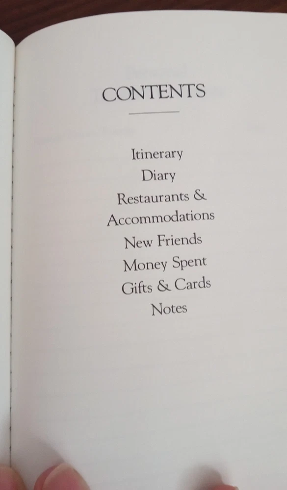 Journal is divided into 7 sections to record your vacation. Contains two pages for you to record your itinerary, then 60 pages to record your diary. Each of the following sections have 12 pages each, the last section has 8 pages to record your final notes. See pictures for dimensions. Purchased years ago but never used. Back cover is slightly cracked, otherwise no flaws. Published in 1984 by the National Trust for Historic Preservation. Cloth cover of Faux Leather.