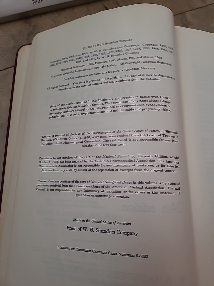 This leather-bound textbook, titled Dorland's Illustrated Medical Dictionary, is a comprehensive reference guide for those in the medical field. Published by W.B. Saunders in 1965, it contains detailed information on medical science topics such as medicine, anatomy, and diseases. The book measures 6.75 inches in length, 10.25 inches in height, and 2.7 inches in width. It features illustrations and is written in English, making it an ideal resource for advanced level adult education. The product type is a reference book, with a personalized option unavailable. This textbook, manufactured in the United States, is categorized under books and magazines, specifically under the textbooks, education, and reference category.
