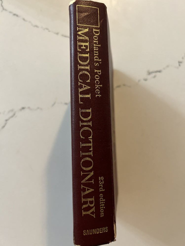 This specialised dictionary is a must-have for adults in the medical profession. The twenty-third edition of Dorland's Pocket Medical Dictionary, published by W B Saunders Company in 1982, contains over 750 pages of medical terms and definitions. The dictionary covers a wide range of medical topics, including medicine in general, and is suitable for beginners. Room 1 Box 5
