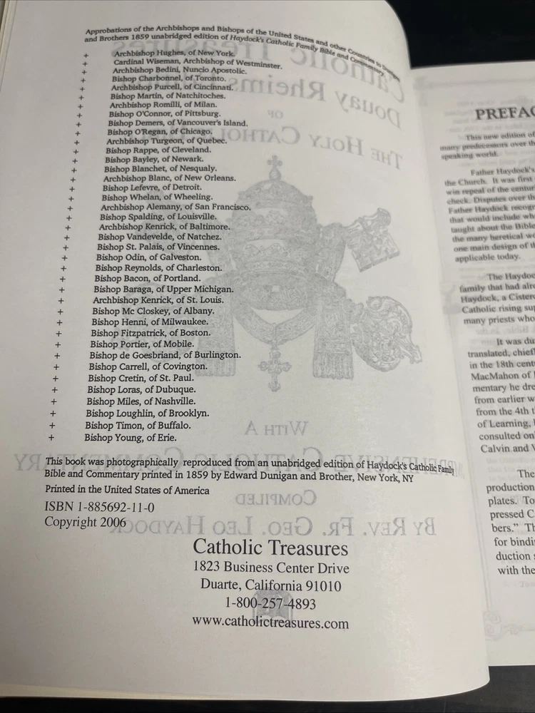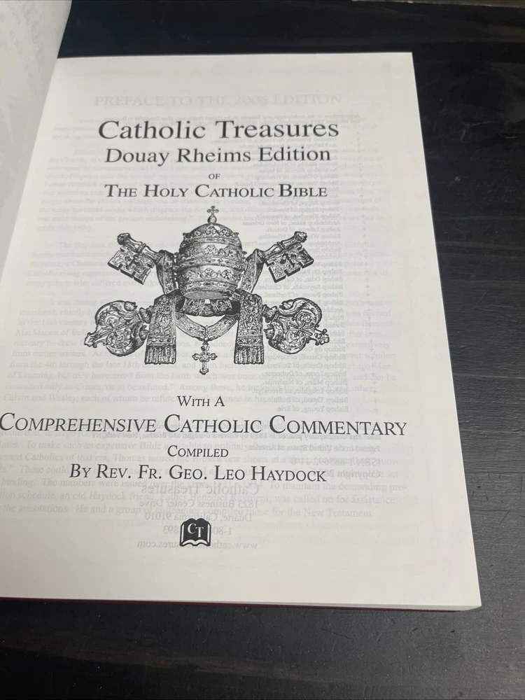 Absolutely beautiful book Condition doesn’t get much better than what it’s in Will be shipped with insurance and packaged very well The "Douay-Rheims Holy Bible with Rev. George Leo Haydock's Notes" is a hardcover book published in 2006 by Catholic Treasures. It is written in English and contains the Bible text along with commentary by Rev. George Leo Haydock. This edition is a valuable resource for those interested in studying and understanding the Bible in depth.