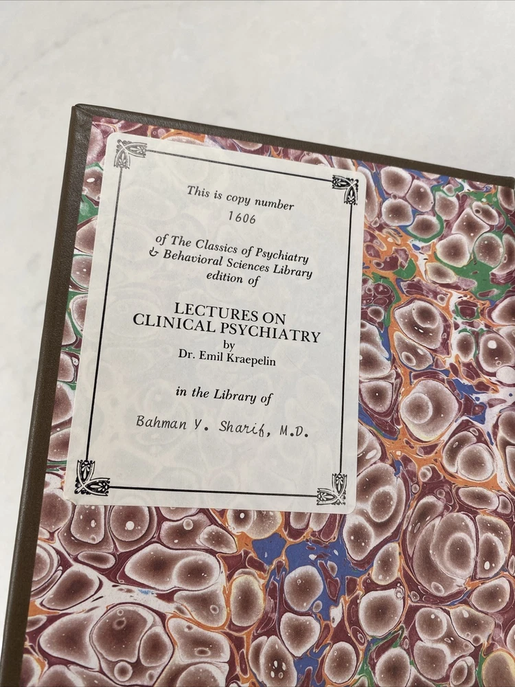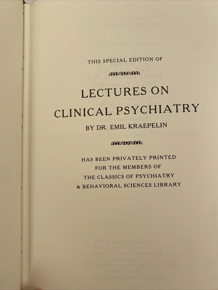 Delve into the depths of psychological knowledge with Dr. Emil Kraepelin's renowned lectures on clinical psychiatry. This edition, bound in luxurious leather, is a testament to timeless wisdom in the field of psychiatry, making it an essential addition to any medical library. The book is part of The Classics of Psychiatry & Behavioral Sciences Library, ensuring that you have access to the most respected texts in the subject area. The lectures are presented in English and cater to a diverse audience ranging from nursery school to adult and further education. With its limited edition status, this book is not only a resource but also a collectible for those passionate about the history and evolution of psychiatric thought. Embrace the opportunity to own a piece of psychiatric legacy with this ex-libris 1988 edition.