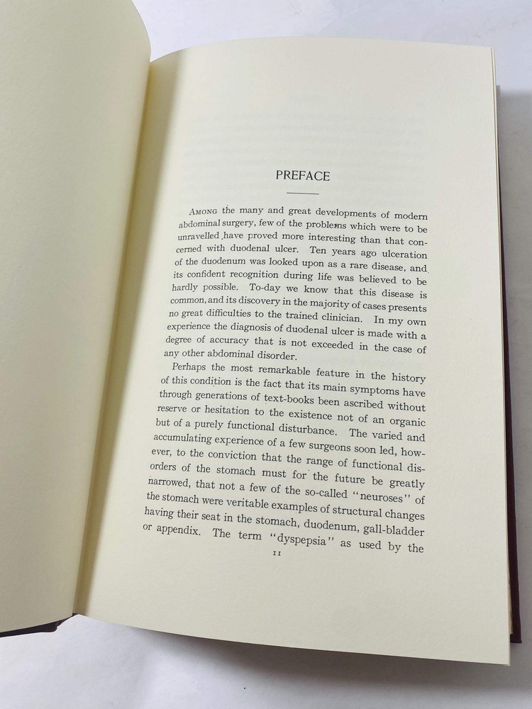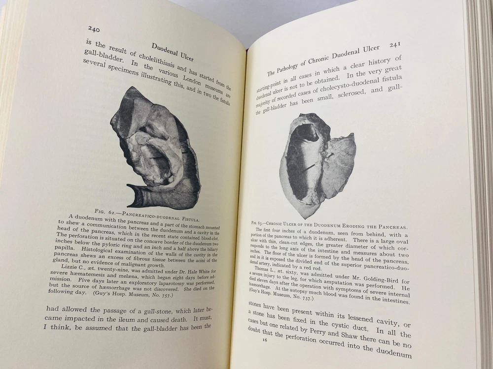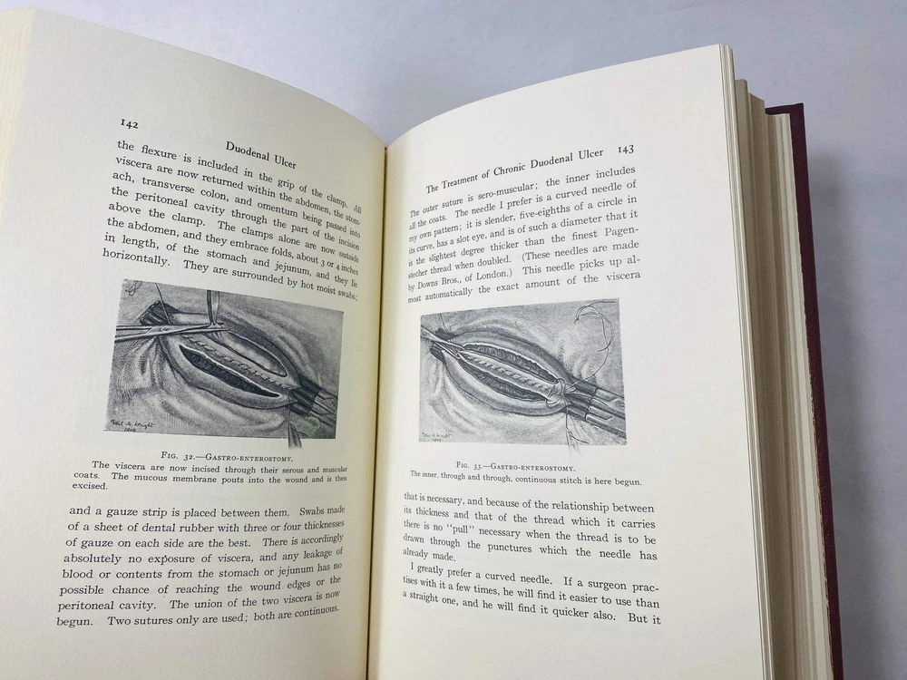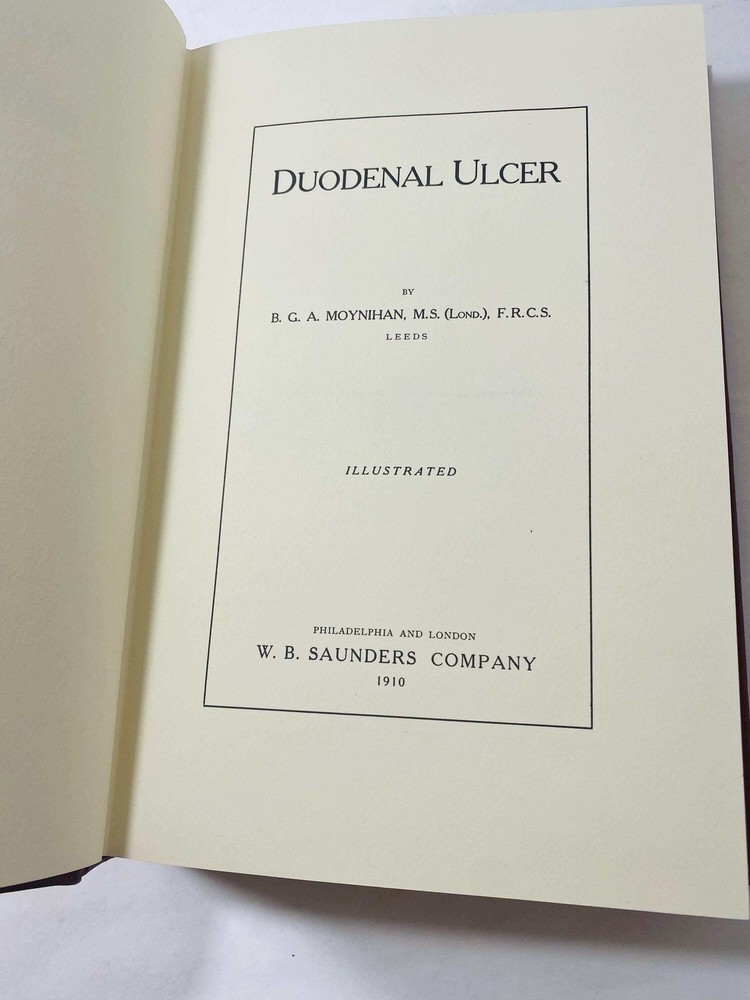 Duodenal Ulcer vintage medical book GORGEOUS rich leather embossed gold Doctor Moynihan Surgery Medicine Physician gift gastrointestinal Duodenal Ulcer by Sir Berkeley Moynihan is a seminal medical text that explores the etiology, diagnosis, and treatment of duodenal ulcers. Written by one of the most respected surgeons of the early 20th century, this book offers a comprehensive analysis of the condition, combining Moynihan’s extensive clinical experience with the latest research of his time. The book covers the anatomy and physiology of the duodenum, the pathological processes leading to ulcer formation, and the symptoms and complications associated with the disease. Moynihan provides detailed guidance on both medical and surgical treatment options, including dietary management, medication, and surgical interventions like gastroenterostomy and pyloroplasty. Illustrated with clinical photographs and surgical diagrams, Duodenal Ulcer is an authoritative resource that has influenced generations of surgeons and gastroenterologists, making it an important historical document in the field of gastrointestinal medicine. CONDITION: VG. **Please see pictures** ABOUT: Duodenal Ulcer Moynihan 1981 Duodenal Ulcer vintage medical book GORGEOUS rich leather embossed gold Doctor Moynihan Surgery Medicine Physician gift gastrointestinal Duodenal Ulcer by Sir Berkeley Moynihan is a seminal medical text that explores the etiology, diagnosis, and treatment of duodenal ulcers. Written by one of the most respected surgeons of the early 20th century, this book offers a comprehensive analysis of the condition, combining Moynihan’s extensive clinical experience with the latest research of his time. The book covers the anatomy and physiology of the duodenum, the pathological processes leading to ulcer formation, and the symptoms and complications associated with the disease. Moynihan provides detailed guidance on both medical and surgical treatment options, including dietary management, medication, and surgical interventions like gastroenterostomy and pyloroplasty. Illustrated with clinical photographs and surgical diagrams, Duodenal Ulcer is an authoritative resource that has influenced generations of surgeons and gastroenterologists, making it an important historical document in the field of gastrointestinal medicine. CONDITION: VG. **Please see pictures** ABOUT: Duodenal Ulcer Moynihan 1981 × × × × × × × × × × Buy now and save! Tell a friend Visit store Watch now Postage info Click the Postage tab above the listing description for more info Click the Postage tab above the listing description for more info! Additional delivery notes PICK UP OPTION Sorry, our items are NOT available for pick-up. PAYING VIA PAYPAL We accept PayPal on our all our items so you can shop with confidence. Simple choose the PayPal option when proceeding through the checkout. Additional Information No additional information at this time Ask seller a question You might also like Bronze Curly Haired Barefoot Boy Reading a Book outside vintage bookends circa 1 Highly detailed vintage carved stone Buddhist bookends statues authentic gypsum Through the Looking-Glass Lewis Carroll FIRST Edition vintage book circa 1890 16 Lewis Carroll Alice's Adventures in Wonderland & Through the Looking Glass vinta Contact To contact our Customer Service Team, simply click the button here and our Customer Service team will be happy to assist. Ask seller a question © Vintage Bookworms Postage Click the Postage tab above the listing description for more info Payment Accepted Payment Methods PayPal Returns Returns are accepted Items must be returned within 30 days of the auction ending Buyer will pay for return shipping. eBay integration by