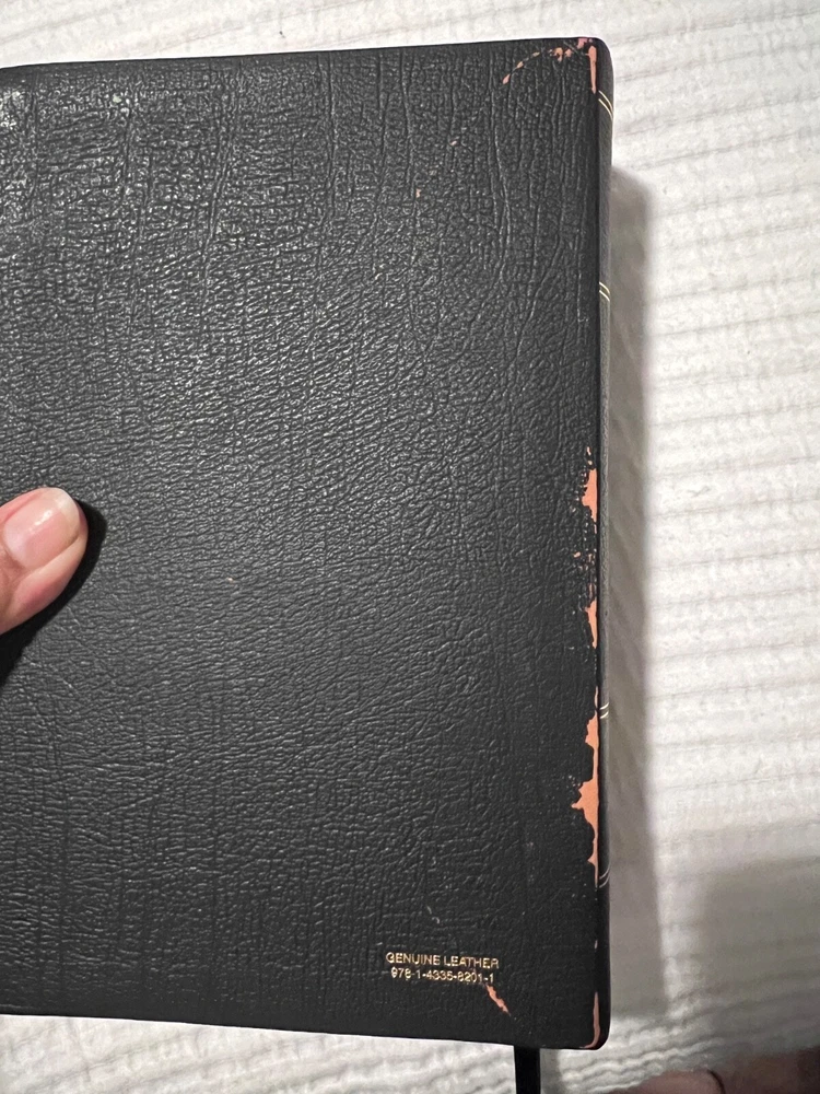Dive deep into the Bible with the ESV Study Bible, encased in a sleek black genuine leather binding. This comprehensive resource, published by Crossway, boasts an impressive collection of features including 20,000 study notes, 80,000 cross-references, and 240 full-color maps and illustrations that bring biblical stories to life. The Smyth-sewn binding ensures durability and longevity, making it a reliable companion for both study and devotion. Though there's minor wear on the outer cover and a flaw on the first inside page, the wealth of content and sturdy craftsmanship more than make up for it. Perfect for anyone seeking a deeper understanding of Scripture.