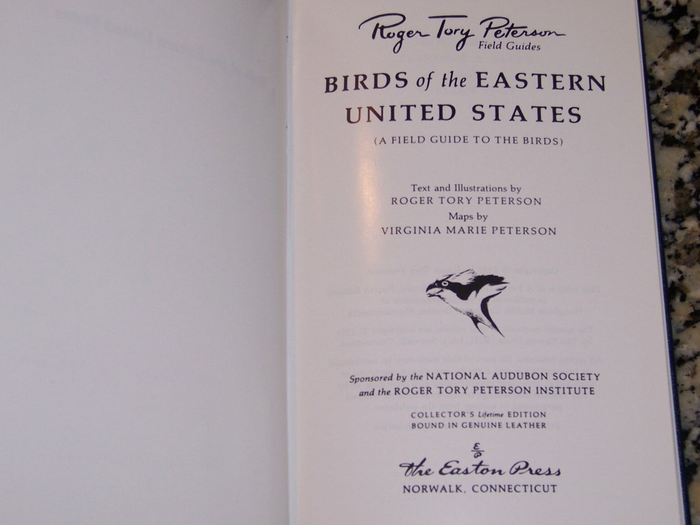 Books from Easton Press Bound in premium leathers, distinctive cover design with stamped picture Endsheets of cream paper, permanent satin ribbon page marker Thread sewn pages for strength and durability, gilded page edges for beauty and protection Handsome readable typefaces, beautiful illustrations, archival-quality acid-neutral paper TITLE Birds of the Eastern United States AUTHOR Roger Tory Peterson (text and illustrations), maps by Virginia Maria Peterson MORE DETAILS Collector's Lifetime Edition, measure by 4 3/4" x 7 1/2" personally hand-signed by Roger Tory Peterson DESCRIPTION Like new condition, unread, clean inside, tight hardcover binding SHIPPING Books will be packed safely, and shipped via USPS Media Mail with tracking number.