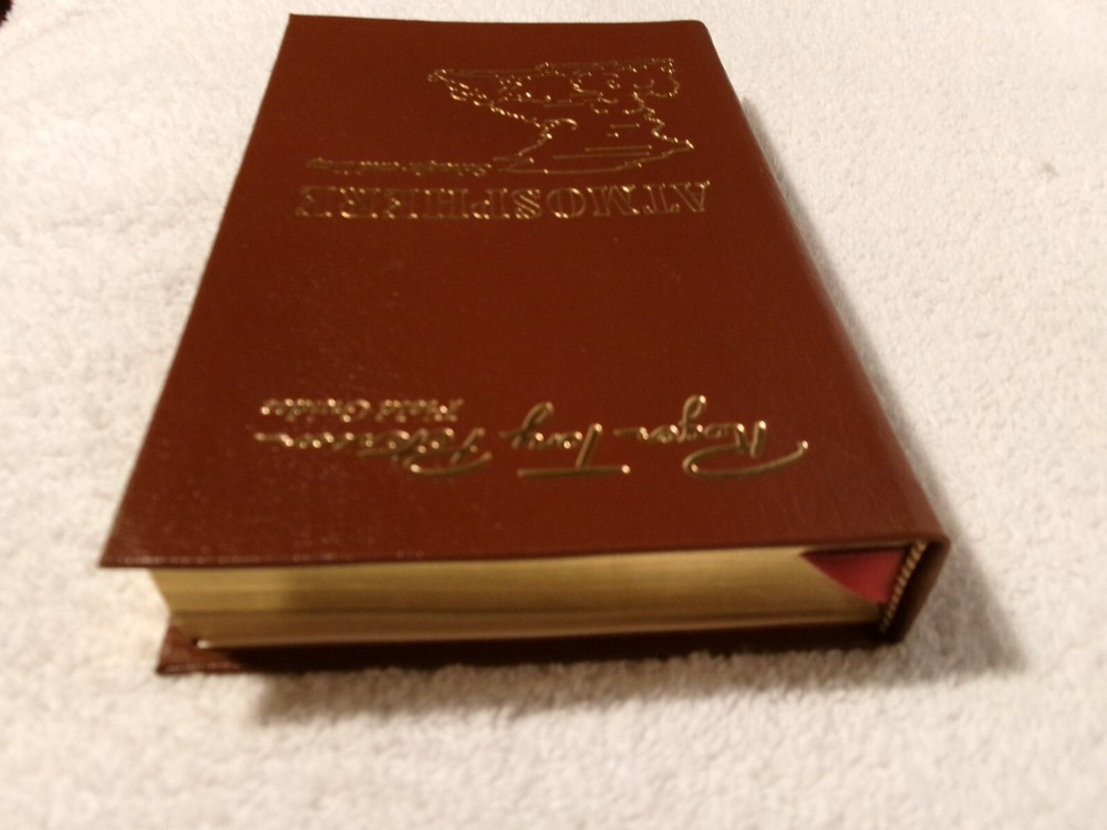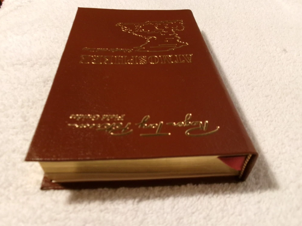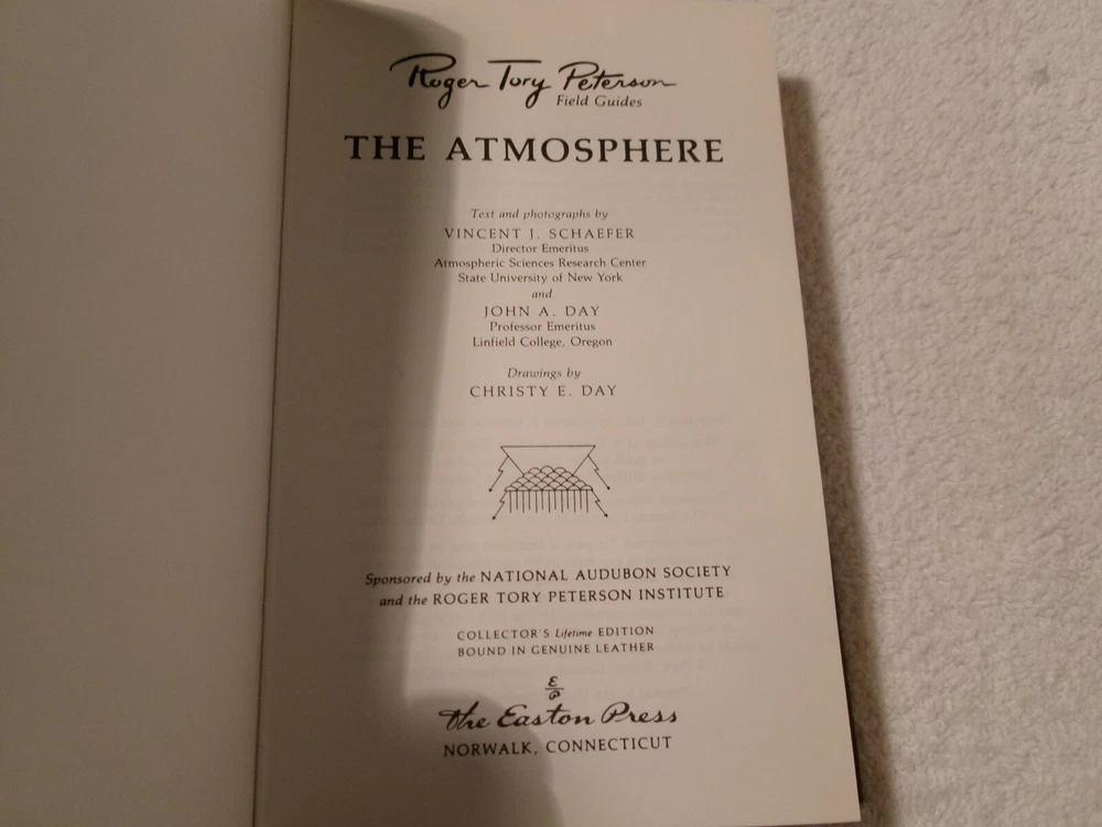 This is an Easton Press Roger Tory Peterson book Atmosphere from the Field Guides series. This is the Collector's Lifetime Edition. The book has a genuine leather cover and edge gilding. I did not want to "break" the spine, so the pictures form inside the book are taken with the book only partially open. This is one of many additional books from the series that I am offering. Please feel free to ask if you do not see a book of interest that is not yet posted. I can also combine several books into one auction, and "make an offer" enables you to immediately purchase at an agreed upon price. Sold as is. Thank you.