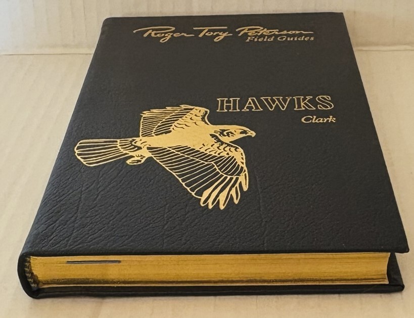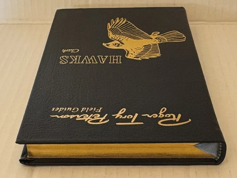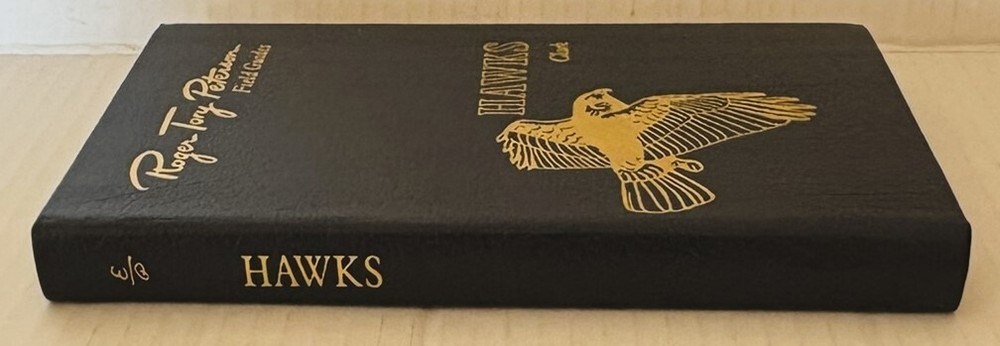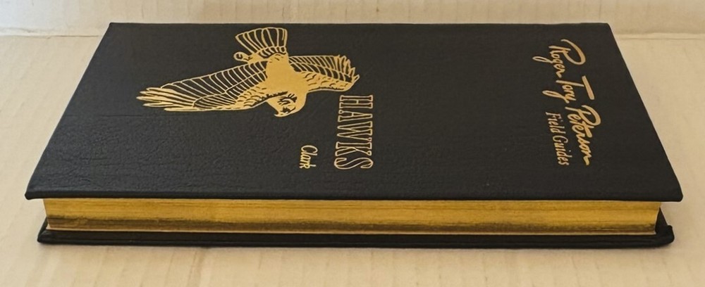 Roger Tory Peterson Field Guide "Hawks." Book is hardcover, leather edition by Easton Press, gold page edges, satin book mark. Copyright 1987. Excellent condition with a few stray marks on the gold edges, otherwise no wear. Shipping is via USPS media mail.