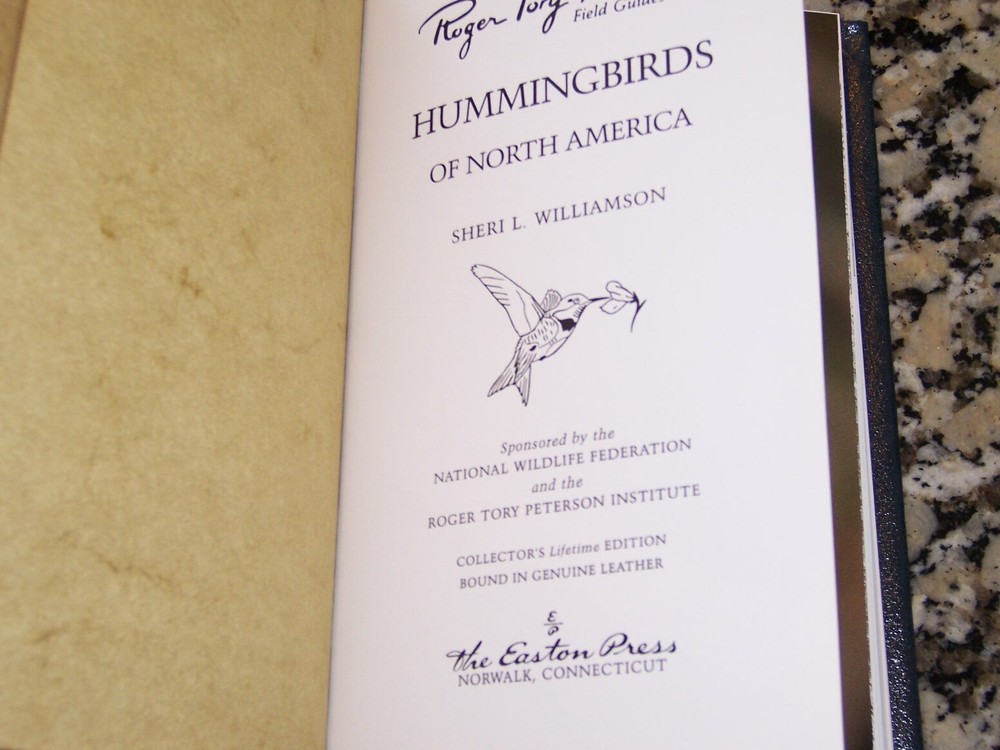 Books from Easton Press Bound in premium leathers, distinctive cover design with stamped picture Endsheets of cream paper, permanent satin ribbon page marker Thread sewn pages for strength and durability, gilded page edges for beauty and protection Handsome readable typefaces, beautiful illustrations, archival-quality acid-neutral paper TITLE HUMMINGBIRDS of North America AUTHOR Sheri L Williamson MORE DETAILS Collector's Lifetime Edition, measure by 4 3/4" x 7 1/2" DESCRIPTION Mint condition, unread, clean inside, tight hardcover binding SHIPPING Books will be packed safely, and shipped via USPS Media Mail with tracking number.