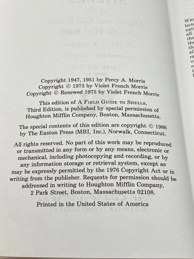 MAKES THE PERFECT GIFT FOR ANY SHELL COLLECTOR ** PLEASE READ : Mahalo for taking the time to look at our listing. We truly appreciate it. We always do our BEST to give you the most accurate description of these beautiful books. If, however, you have any SPECIFIC questions about the SIZE of the book, NUMBER of pages, TYPE of leather, SMELL or FEEL of the book, PLEASE email us through EBay’s mail system BEFORE you bid, and we will be HAPPY to give you more information. We want you to be completely happy with your purchase and keep you as our customers for years to come!** DESCRIPTION: Easton Press’s FULL LEATHER OUT OF PRINT edition of ATLANTIC SHELLS. THIS IS A VINTAGE HEIRLOOM EASTON WITH LAVISH GILT IMPRESSIONS. IT IS ONE OF THE MOST HIGHLY-PRIZED EDITIONS OF THIS GREAT FIELD GUIDE. ORIGINAL UNATTACHED BOOKPLATE INCLUDED. 🍍 NOT INCLUDED. 🍍 NOT INCLUDED… 😃 ABOUT THE BOOK: A Field Guide to Shells of the Atlantic and Gulf Coasts and the West Indies .800 species described, with common and scientific names, geographical range, habitat, and detailed description for each species, plus extra information on name changes and life cycle 74 new color plates showing 780 species, including live animals 115 new drawings showing shells and animals .Glossary, bibliography, and a list of shell clubs. This book deals with a part of the environment that affects every one of us-as well as every bird, mammal, fish, insect, and plant-daily. CONDITION: Book is in LIKE NEW condition for its age with only a few minor rubs to the gilt endpages (SEE PICS FOR FURTHER DETAILS). NO ATTACHED BOOKPLATES, WRITING FROM PREVIOUS OWNER, ETC. It is truly a SPECTACULAR EDITION SHIPPING: FREE TO US ADDRESSES ONLY. INTERNATIONAL $ based on location. WE SHIP PRIORITY MAIL & PACK VERY WELL. Please check out our other listings of Easton Press, Franklin Library, Limited Editions Club, Heritage Press, Folio Society, International Collectors Library, and First Edition Library editions. WE DO COMBINE SHIPPING IF YOU PURCHASE MORE THAN ONE COPY. Mahalo for looking at our listings! By bidding/purchasing this item, you are helping a very grateful family who sends you our WARMEST ALOHA & MAHALO!
