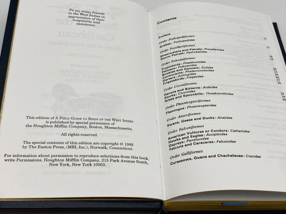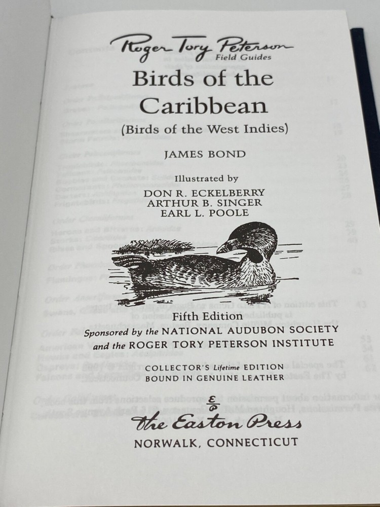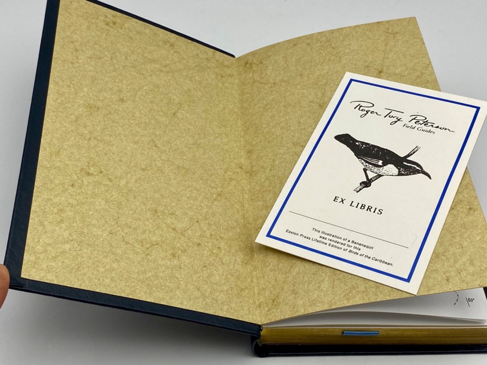 MAKES THE PERFECT GIFT FOR ANY BIRD WATCHER / FAN OF BIRDS OF THE CARIBBEAN ** PLEASE READ : Mahalo for taking the time to look at our listing. We truly appreciate it. We always do our BEST to give you the most accurate description of these beautiful books. If, however, you have any SPECIFIC questions about the SIZE of the book, NUMBER of pages, TYPE of leather, SMELL or FEEL of the book, PLEASE email us through EBay’s mail system BEFORE you bid, and we will be HAPPY to give you more information. We want you to be completely happy with your purchase and keep you as our customers for years to come!** DESCRIPTION: Easton Press’s FULL LEATHER PETERSON’S FIELD GUIDES of BIRDS OF THE CARIBBEAN, long OUT OF PRINT. THIS IS A VINTAGE HEIRLOOM EASTON WITH LAVISH GILT IMPRESSIONS TO THE BOARDS AND SPINE with INCREDIBLE ILLUSTRATIONS AND COLOR PHOTOS. THIS IS ONE OF THE MOST HIGHLY-PRIZED EDITIONS OF THIS PETERSON FIELD GUIDES. ORIGINAL UNUSUED BOOKPLATE IS INCLUDED. 🍍 NOT INCLUDED… 😃 ABOUT THE BOOK: Collector's Lifetime Edition leather bound, gilt edges, with ribbon bookmark, part of the Roger Tory Peterson Field Guide Collection, written by James Bond. CONDITION: Book is in PRISTINE condition for its age — JUST REMOVED FROM ORIGINAL SHRINKWRAP TO VERIFY INTERIOR CONTENTS ( SEE PICS FOR FURTHER DETAILS). NO WRITING FROM PREVIOUS OWNER, ETC. It is a BEAUTIFUL EDITION. SHIPPING: FREE TO US ADDRESSES ONLY. INTERNATIONAL $ based on location. WE SHIP PRIORITY MAIL & PACK VERY WELL. Please check out our other listings of Easton Press, Franklin Library, Limited Editions Club, Heritage Press, International Collectors Library, Heritage Press, First Edition Library, and Folio Society editions. WE DO COMBINE SHIPPING IF YOU PURCHASE MORE THAN ONE COPY. Mahalo for looking at our listings! By bidding/purchasing this item, you are helping a very grateful family who sends you our WARMEST ALOHA & MAHALO!