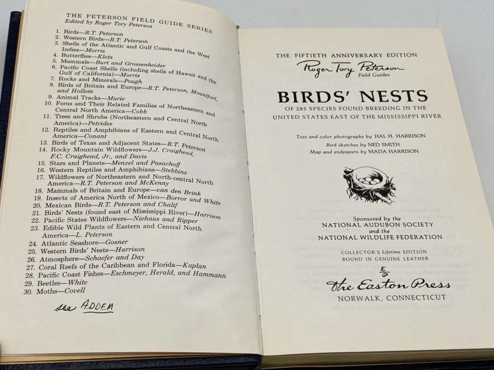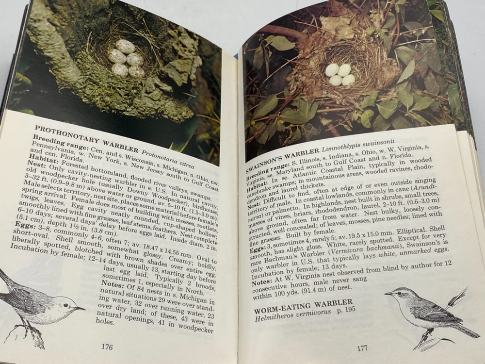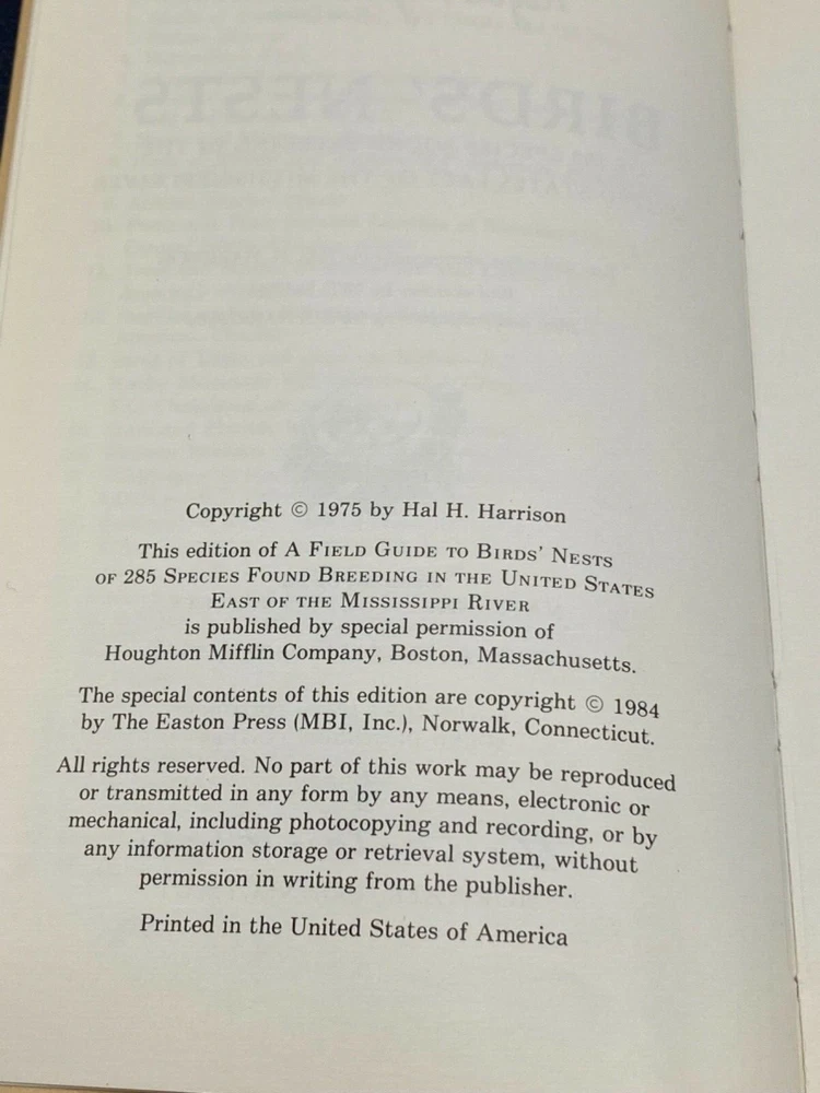 MAKES THE PERFECT GIFT FOR ANY BIRD WATCHER ** PLEASE READ : Mahalo for taking the time to look at our listing. We truly appreciate it. We always do our BEST to give you the most accurate description of these beautiful books. If, however, you have any SPECIFIC questions about the SIZE of the book, NUMBER of pages, TYPE of leather, SMELL or FEEL of the book, PLEASE email us through EBay’s mail system BEFORE you bid, and we will be HAPPY to give you more information. We want you to be completely happy with your purchase and keep you as our customers for years to come!** DESCRIPTION: Easton Press’s FULL LEATHER edition, LONG out of print. THIS IS A VINTAGE HEIRLOOM EASTON WITH LAVISH GILT IMPRESSIONS TO THE BOARDS AND SPINE with BEAUTIFUL ILLUSTRATIONS AND PHOTOGRAPHS. UNATTACHED, BLANK ORIGINAL BOOKPLATE IS INCLUDED WITH #21 WRITTEN ON IT. THIS IS ONE OF THE MOST HIGHLY-PRIZED EDITIONS OF THIS CLASSIC FIELD GUIDE. 🍍 NOT INCLUDED… 😃 ABOUT THE BOOK: This guide includes the nest and eggs of 285 species found in the 26 states east of the Mississippi River. Descriptions of breeding range and time, habitat, and nests and eggs are enhanced by 222 color photographs. Description CONDITION: Book is in LIKE NEW condition for its age with the word ‘addendum’ written on the opposite side of the title page (SEE PICS FOR FURTHER DETAILS). NO WRITING FROM PREVIOUS OWNER, ETC. It is a BEAUTIFUL EDITION. SHIPPING: FREE to US ADDRESSES ONLY. INTERNATIONAL $ based on location. WE SHIP PRIORITY MAIL & PACK VERY WELL. Please check out our other listings of Easton Press, Franklin Library, Limited Editions Club, First Edition Library, Heritage Press, International Collectors Library, and Folio Society editions. WE DO COMBINE SHIPPING IF YOU PURCHASE MORE THAN ONE COPY. Mahalo for looking at our listings! By bidding/purchasing this item, you are helping a very grateful family who sends you our WARMEST ALOHA & MAHALO!