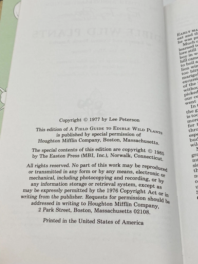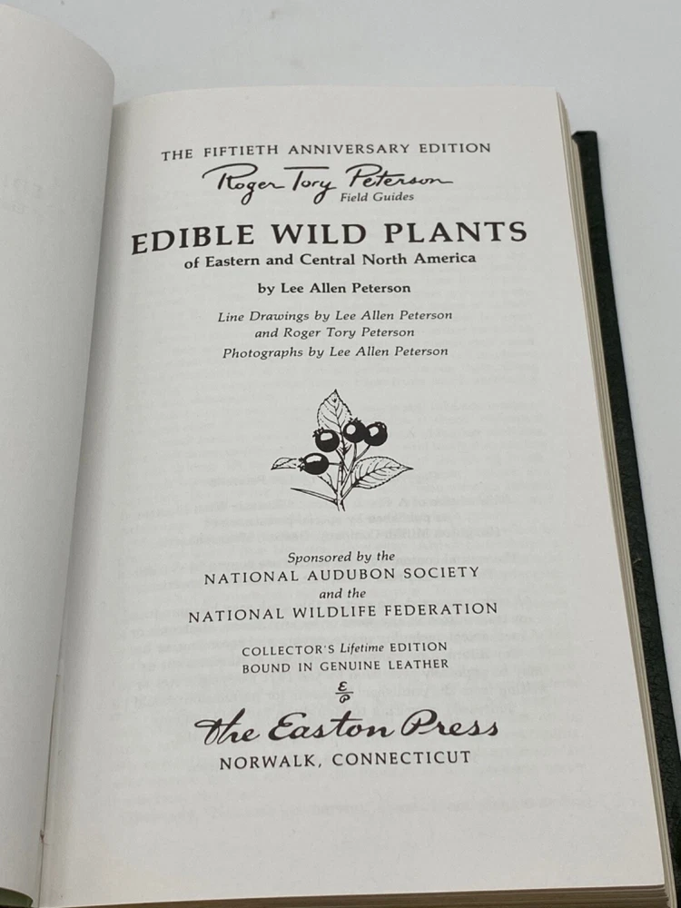 MAKES THE PERFECT GIFT FOR ANY NATURE SURVIVALIST ** PLEASE READ : Mahalo for taking the time to look at our listing. We truly appreciate it. We always do our BEST to give you the most accurate description of these beautiful books. If, however, you have any SPECIFIC questions about the SIZE of the book, NUMBER of pages, TYPE of leather, SMELL or FEEL of the book, PLEASE email us through EBay’s mail system BEFORE you bid, and we will be HAPPY to give you more information. We want you to be completely happy with your purchase and keep you as our customers for years to come!** DESCRIPTION: Easton Press’s FULL LEATHER edition LONG out of print. THIS IS A SCARCE HEIRLOOM EASTON EDITION WITH BEAUTIFUL PHOTOS AND ILLUSTRATIONS. ORIGINAL UNATTACHED, BLANK BOOKPLATE IS INCLUDED. THIS IS ONE OF THE MOST HIGHLY PRIZED EASTON PETERSON FIELD GUIDES. 🍍 NOT INCLUDED... 😃 ABOUT THE BOOK: More than 370 edible wild plants, plus 37 poisonous lookalikes, are described here, with 400 drawings and 78 color photographs showing precisely how to recognize each species. Also included are habitat descriptions, lists of plants by season, and preparation instructions for 22 different food uses. Description CONDITION: Book is in LIKE NEW condition with only a couple of faint negligible rubs to the gilt page ends, barely worth noting (SEE PICS FOR FURTHER DETAILS). NO ATTACHED BOOKPLATES, WRITING FROM PREVIOUS OWNER, ETC. It is a BEAUTIFUL EDITION. SHIPPING: FREE to US ADDRESSES ONLY. INTERNATIONAL $ based on location. WE SHIP PRIORITY MAIL & PACK VERY WELL. Please check out our other listings of Easton Press, Franklin Library, and Limited Editions Club, First Edition Library, Heritage Press, International Collectors Library, and Folio Society editions. WE DO COMBINE SHIPPING IF YOU PURCHASE MORE THAN ONE COPY. Mahalo for looking at our listings! By bidding/purchasing this item, you are helping a very grateful family who sends you our WARMEST ALOHA & MAHALO!