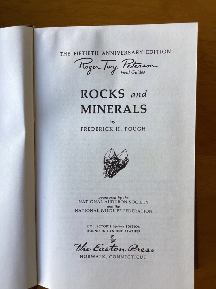 This vintage Easton Press book from 1985 is the Roger Tory Peterson Field Guide - Rocks and Minerals by Pough. Leather bound with gold tinged pages. Collectors Edition. Please see photos. I have many other Easton Press listings, including many other field guides, if you are interested. Please message me for a list.