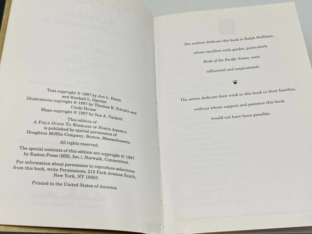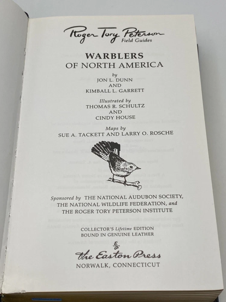 MAKES THE PERFECT GIFT FOR ANY BIRD WATCHER ** PLEASE READ : Mahalo for taking the time to look at our listing. We truly appreciate it. We always do our BEST to give you the most accurate description of these beautiful books. If, however, you have any SPECIFIC questions about the SIZE of the book, NUMBER of pages, TYPE of leather, SMELL or FEEL of the book, PLEASE email us through EBay’s mail system BEFORE you bid, and we will be HAPPY to give you more information. We want you to be completely happy with your purchase and keep you as our customers for years to come!** DESCRIPTION: Easton Press’s FULL LEATHER edition, LONG out of print. THIS IS AN HEIRLOOM EASTON EDITION WITH LAVISH GILT IMPRESSIONS TO THE BOARDS AND SPINE with BEAUTIFUL PHOTOS/ILLUSTRATIONS. ORIGINAL UNATTACHED, BLANK BOOKPLATE WITH #47 WRITTEN ON IT IS INCLUDED. THIS IS ONE OF THE MOST HIGHLY-PRIZED EDITIONS OF THIS FIELD GUIDE. 🍍 NOT INCLUDED… 😃 ABOUT THE BOOK: The first comprehensive field guide to North American warblers describes all 60 species in detail, from field marks and vocalizations to mating habits and preferred habitats. The 32 color paintings use the unique Peterson Identification System to indicate what distinguishes one bird from another. 141 color photographs show various plumages for each species, and 60 large color maps show species' ranges. Description CONDITION: Book is in LIKE NEW condition for its age with only a couple minor rubs to the gilt endpages(SEE PICS FOR FURTHER DETAILS). NO WRITING FROM PREVIOUS OWNER, ETC. It is a BEAUTIFUL EDITION. SHIPPING: FREE to US ADDRESSES ONLY. INTERNATIONAL $ based on location. WE SHIP PRIORITY MAIL & PACK VERY WELL. Please check out our other listings of Easton Press, Franklin Library, and Limited Editions Club, First Edition Library, Heritage Press, International Collectors Library and Folio Society editions. WE DO COMBINE SHIPPING IF YOU PURCHASE MORE THAN ONE COPY. Mahalo for looking at our listings! By bidding/purchasing this item, you are helping a very grateful family who sends you our WARMEST ALOHA & MAHALO!