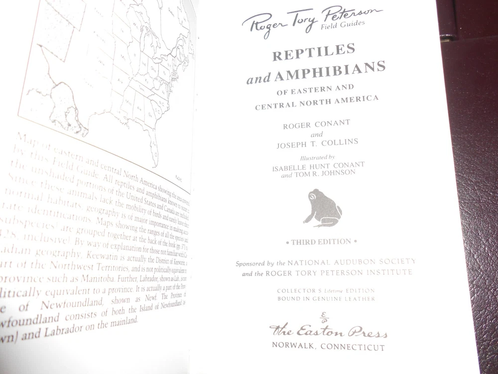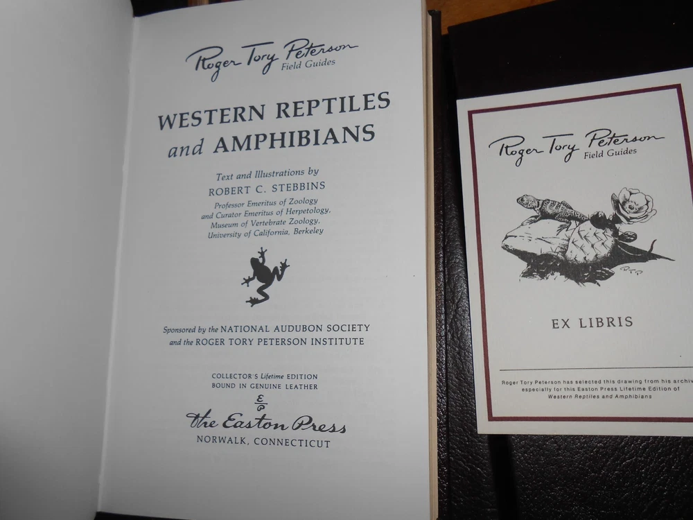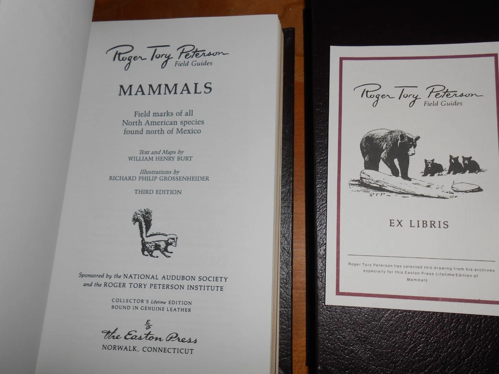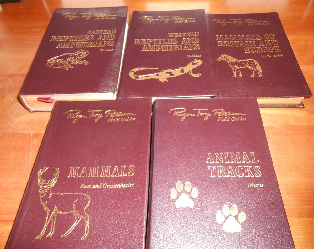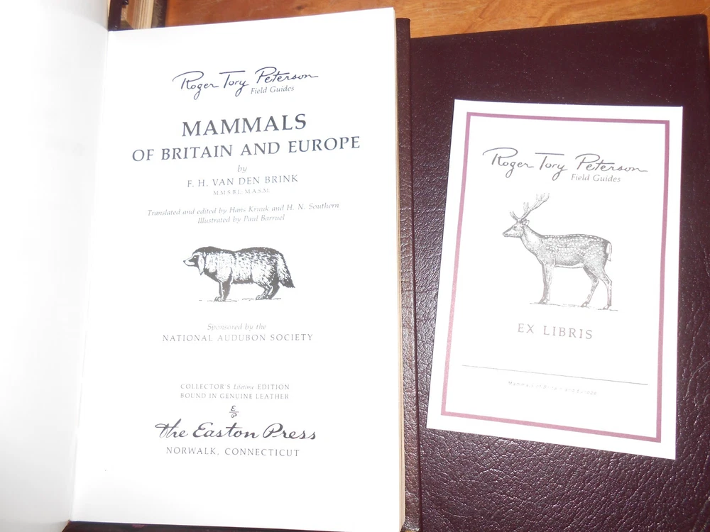 Easton Press Special 50th Anniversary Edition. Leather bindings, gilded page edges, attached bookmark and unused bookplates. This Lot of 5 Mammals is listed with the spine label and the original PFG (Pacific Field Guide) number:: Dark Brown (Mammals, etc.) EASTERN REPTILES/AMPHIBIANS PFG 12: A Field Guide to Reptiles and Amphibians of the United States and Canada East of the 100th Meridian (1958) by Roger Conant; Illustrated by Isabelle Hunt Conant (NO BOOK LABEL) WESTERN REPTILES/AMPHIBIANS PFG 16: A Field Guide to Western Reptiles and Amphibians: Field Marks of All Species in Western North America, including California , by Robert C. Stebbins: Second edition (1985) MAMMALS OF BRITAIN & EUROPE PFG 18: Mammals of Britain and Europe by Van Den Brink. MAMMALS PFG 5: A Field Guide to the Mammals: Field Marks of all North American Species found North of Mexico Third edition (1976), by William Henry Burt; Illustrated by Richard Philip Grossenheider ANIMAL TRACKS PFG 9: Animal Tracks Second Edition (1974) , by Olaus J. Murie Leather Hardcovers Condition: RATED: USED: Very Good condition. See Condition Description for details. Please review all photos. Dimensions: 7.5” (H) x 4.75” (W) x 5.125” (Shelf Width). Will be shipped in one box. (Shipping approximately 6 lbs. total weight) Local Pickup (Sacramento, CA): Our store hours are 9am to 3pm, Wednesdays, Fridays and Saturdays. Pickup date must be pre-arranged. International shipping is with eBay’s Global Shipping Program only. International Buyers - Please Note: Import duties, taxes, and charges are not included in the item price or shipping cost. These charges are the buyer's responsibility. Please check with your country's customs office to determine what these additional costs will be prior to bidding or buying. Please visit the Sacramento Book Den eBay store for other great books. Click here for the Sacramento Book Den eBay store All proceeds go to the Sacramento Public Library. Thank you for your consideration of this lot of 5 Easton Press Roger Tory Peterson Field Guides on Mammals. Locator: 26654JB