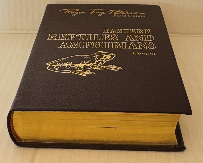 Roger Tory Peterson Field Guides "Eastern Reptiles and Amphibians" Book. Book is hardcover collector's edition, leather cover, gold page edges with satin bookmark. Copyright 1991. Excellent condition with no visible wear. Shipping is via USPS media mail.