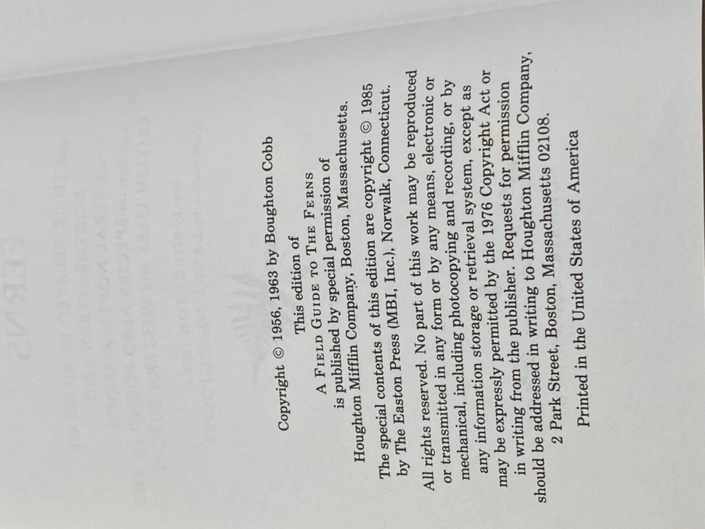 MAKES A GREAT GIFT FOR ANY PLANT ENTHUSIAST ** PLEASE READ : Mahalo for taking the time to look at our listing. We truly appreciate it. We always do our BEST to give you the most accurate description of these beautiful books. If, however, you have any SPECIFIC questions about the SIZE of the book, NUMBER of pages, TYPE of leather, SMELL or FEEL of the book, PLEASE email us through EBay’s mail system BEFORE you bid, and we will be HAPPY to give you more information. We want you to be completely happy with your purchase and keep you as our customers for years to come!** DESCRIPTION: Easton Press’s FULL LEATHER PETERSON’S FIELD GUIDES of FERNS AND THEIR RELATED FAMILIES OF NORTHEASTERN AND CENTRAL NORTH AMERICA with a section on SPECIES ALSO FOUND IN THE BRITISH ISLES and WESTERN EUROPE , long OUT OF PRINT. ORIGINAL BLANK ATTACHED BOOKPLATE, READY FOR YOUR PERSONALIZATION. 🍍 NOT INCLUDED... 😃 ABOUT THE BOOK: Since 1956, when the late Boughton Cobb wrote his field guide to ferns, this book, unchanged in all the years since, has become the classic on the subject. Now the New England Wild Flower Society (NEWFS) has completely updated the text and added 100 color photographs. CONDITION: Book is in LIKE NEW condition for its age with only a couple of negligible faint rubs to the gilt page ends and an attached, blank bookplate, ready for your personalization (SEE PICS FOR MORE DETAILS). NO WRITING FROM PREVIOUS OWNER, ETC. It is a SPECTACULAR EDITION. SHIPPING: FREE TO US ADDRESSES ONLY. INTERNATIONAL $ based on location. WE SHIP PRIORITY MAIL & PACK VERY WELL. Please check out our other listings of Easton Press, Franklin Library, and Limited Editions Club, First Edition Library, and International Collectors Library editions. WE DO COMBINE SHIPPING IF YOU PURCHASE MORE THAN ONE COPY. Mahalo for looking at our listings! By bidding/purchasing this item, you are helping a very grateful family who sends you our WARMEST ALOHA & MAHALO!