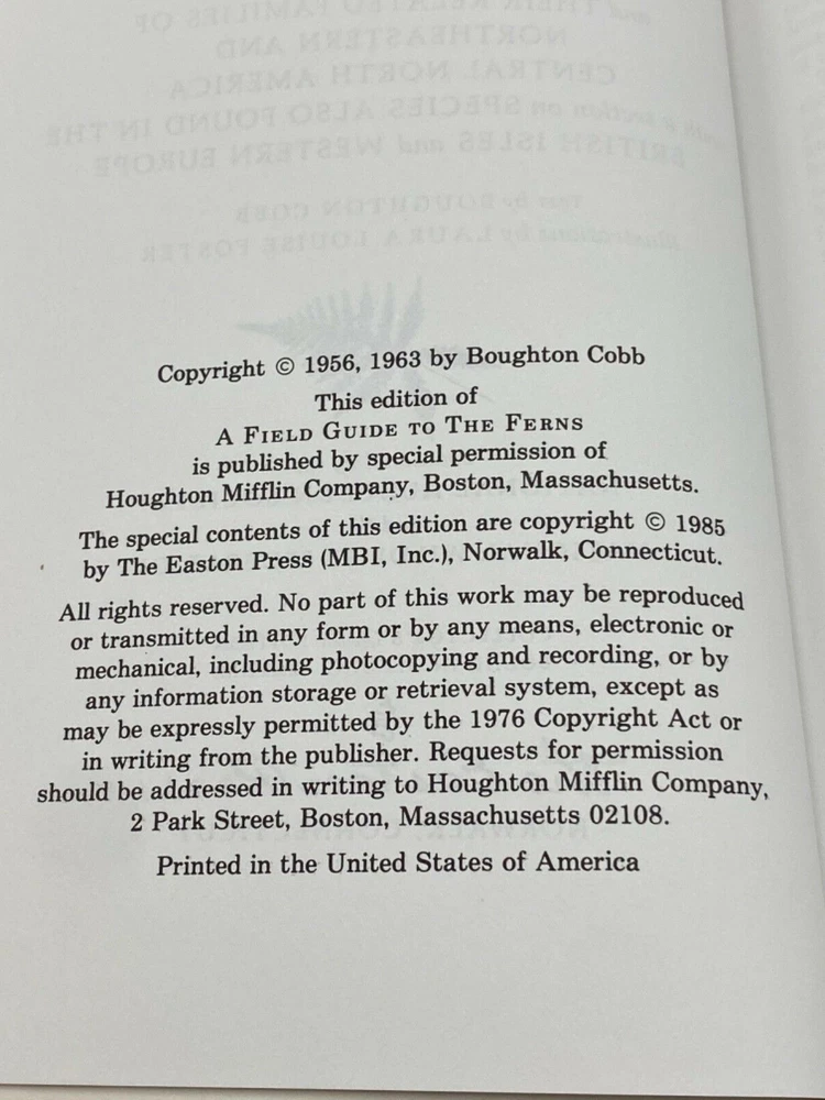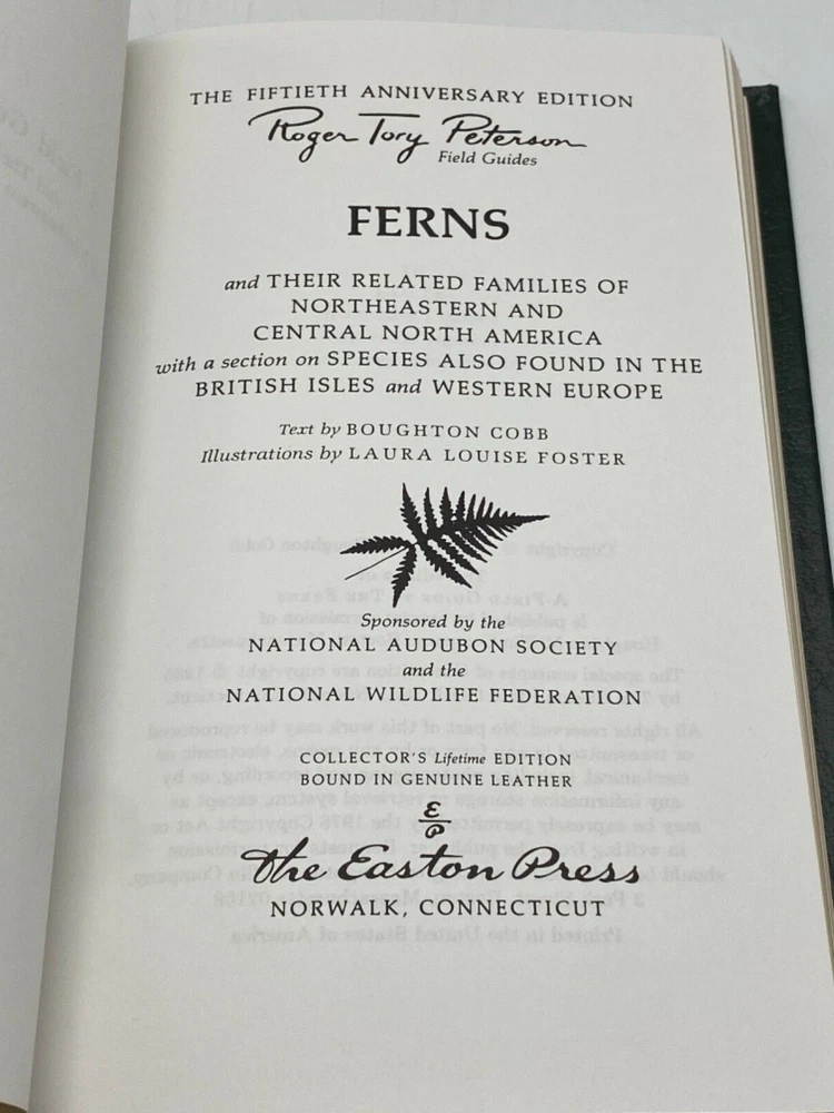 MAKES A GREAT GIFT FOR ANY PLANT ENTHUSIAST ** PLEASE READ : Mahalo for taking the time to look at our listing. We truly appreciate it. We always do our BEST to give you the most accurate description of these beautiful books. If, however, you have any SPECIFIC questions about the SIZE of the book, NUMBER of pages, TYPE of leather, SMELL or FEEL of the book, PLEASE email us through EBay’s mail system BEFORE you bid, and we will be HAPPY to give you more information. We want you to be completely happy with your purchase and keep you as our customers for years to come!** DESCRIPTION: Easton Press’s FULL LEATHER PETERSON’S FIELD GUIDES of PETERSON’S FIELD GUIDES of FERNS AND THEIR RELATED FAMILIES OF NORTHEASTERN AND CENTRAL NORTH AMERICA with a section on SPECIES ALSO FOUND IN THE BRITISH ISLES and WESTERN EUROPE , long OUT OF PRINT. ORIGINAL UNUSED BOOKPLATE IS INCLUDED WITH #10 PRINTED ON IT. 🍍 NOT INCLUDED... 😃 ABOUT THE BOOK: Since 1956, when the late Boughton Cobb wrote his field guide to ferns, this book, unchanged in all the years since, has become the classic on the subject. Now the New England Wild Flower Society (NEWFS) has completely updated the text and added 100 color photographs. CONDITION: Book is in LIKE NEW condition for its age with no discernible flaws (SEE PICS FOR MORE DETAILS). NO ATTACHED BOOKPLATES, WRITING FROM PREVIOUS OWNER, ETC. It is a SPECTACULAR EDITION. SHIPPING: FREE TO US ADDRESSES ONLY. INTERNATIONAL $ based on location. WE SHIP PRIORITY MAIL & PACK VERY WELL. Please check out our other listings of Easton Press, Franklin Library, and Limited Editions Club, and First Edition Library editions. WE DO COMBINE SHIPPING IF YOU PURCHASE MORE THAN ONE COPY. Mahalo for looking at our listings! By bidding/purchasing this item, you are helping a very grateful family who sends you our WARMEST ALOHA & MAHALO!