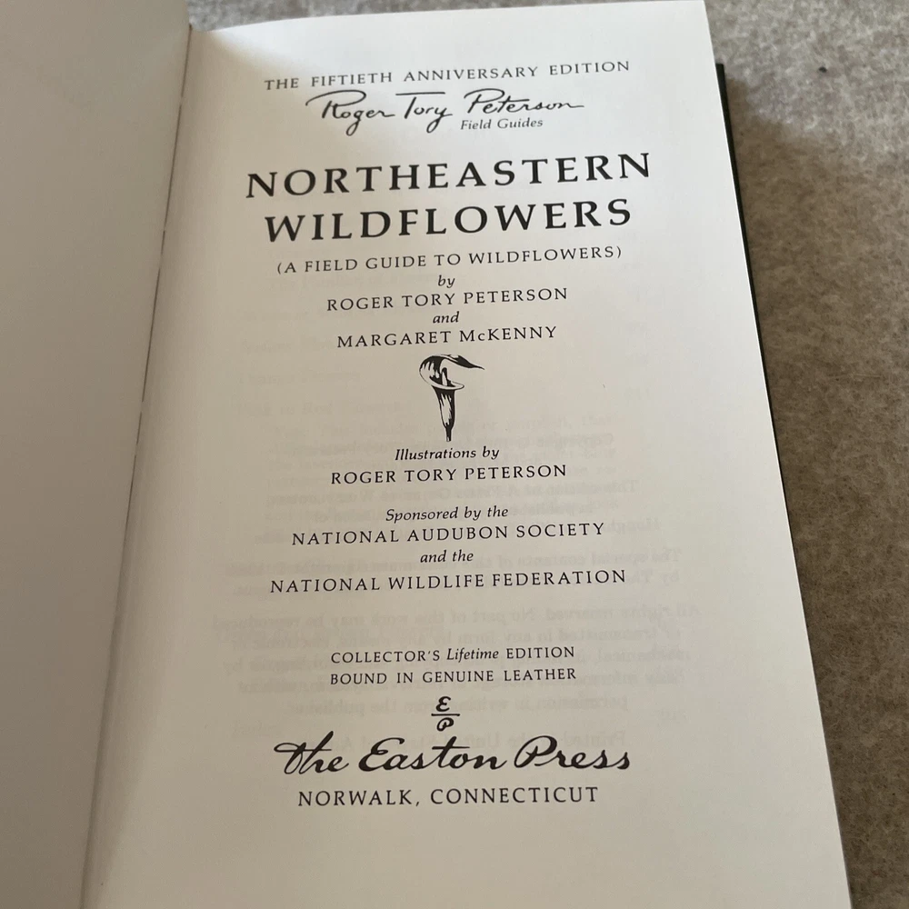 Easton Press Roger Tory Peterson Field Guides Northeastern Wildflowers The book is full leather. This book is in mint condition with no wear. The gold on the covers looks like new. The end pages show no fading. The gilt on the edge of the pages is in perfect condition. Please see photos. We try to describe as accurately as possible so you will be satisfied with your purchase. We have more books from this set on eBay and we would be happy to combine on shipping to save you money. All books are sent with insurance via USPS Media Mail.