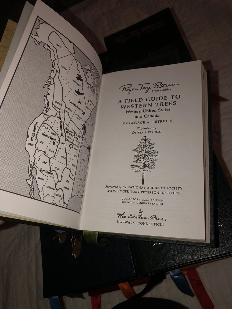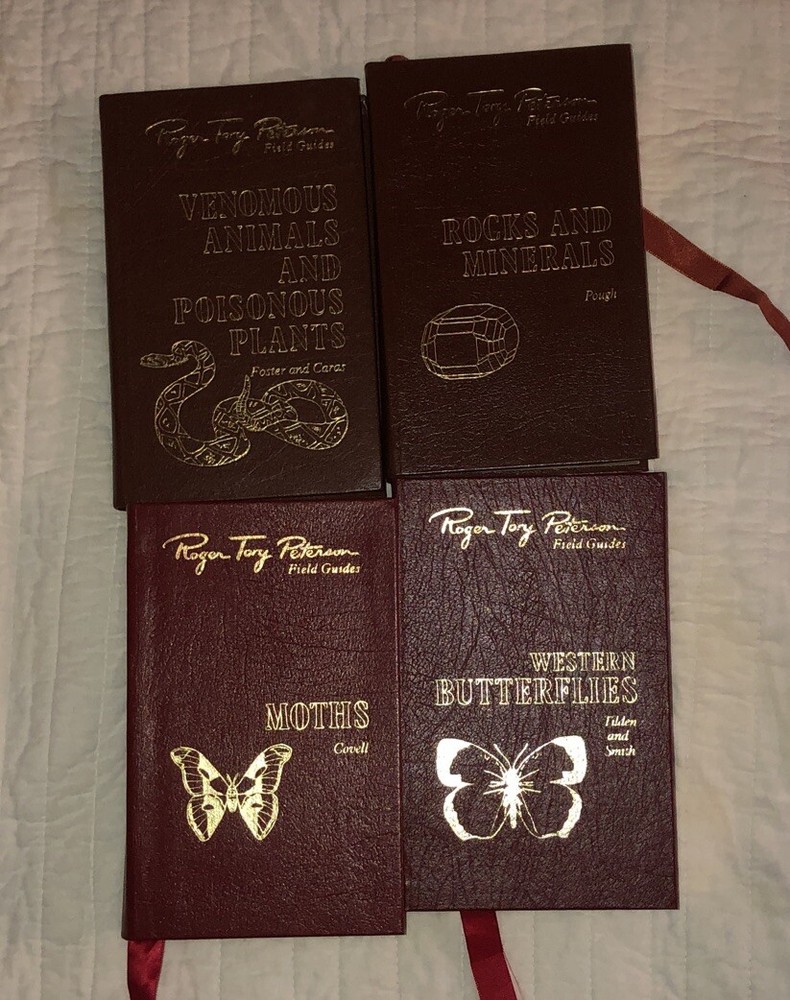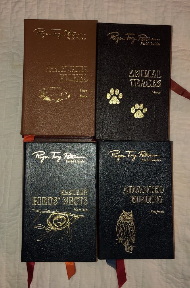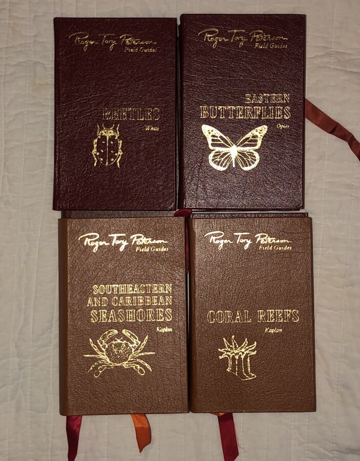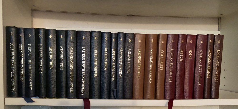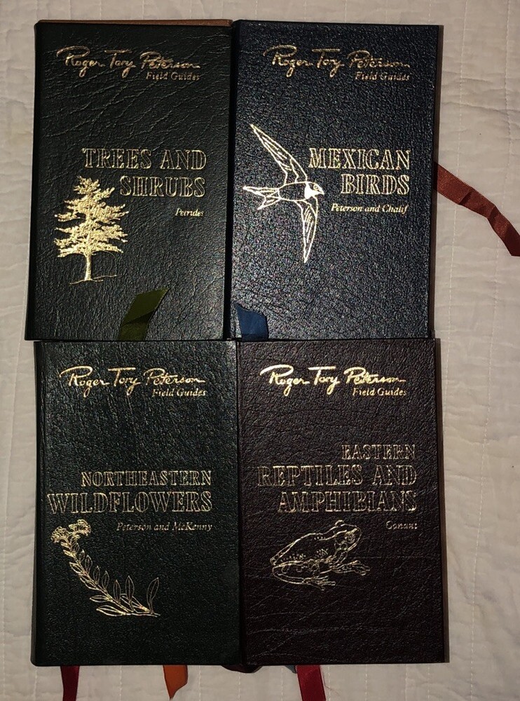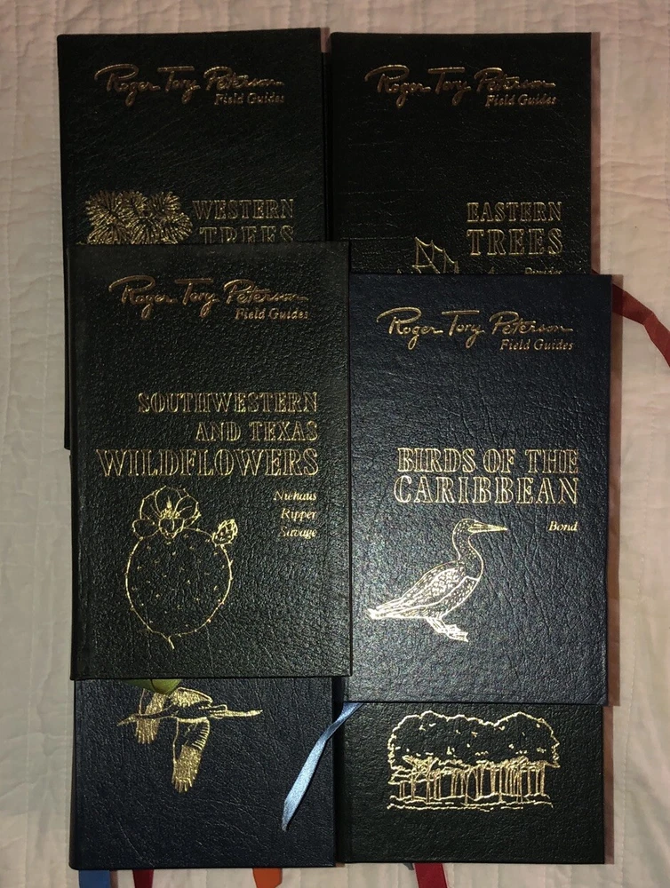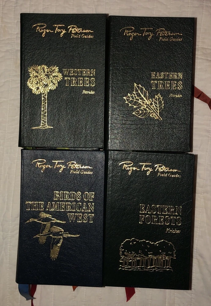 Easton Press Peterson Field Guide Book Set You will receive 22 Volumes. Excellent condition. Some have book plates No tears, stains. Non smoking home You Will Receive the Following Titles: Southwestern Wildflowers Birds of the Caribbean Advanced Birding Eastern Birds' Nests Mexican Birds Birds of the American West Northeastern Wildflowers Trees and Shrubs Eastern Forests Eastern Trees Western Trees Coral Reefs Southeastern Seashores Freshwater Fishes Eastern Reptiles/Amphibians Animal Tracks Venomous Animals Rocks and Minerals Beetles Eastern Butterflies Western Butterflies Moths