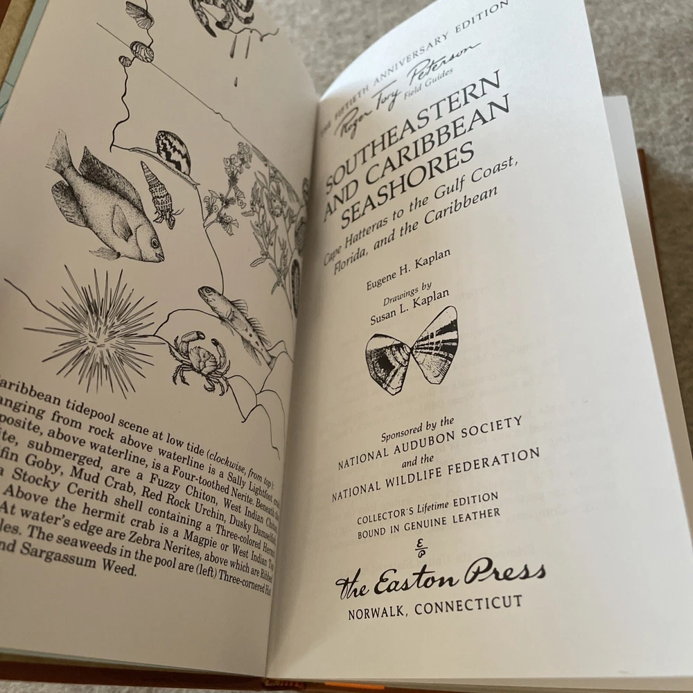 Easton Press Roger Tory Peterson Field Guides Southeastern Seashore The book is full leather. This book is in near mint condition with no wear. The gold on the covers looks like new. The end pages show no fading. The gilt on the edge of the pages is in almost perfect condition with a scratch on the side. Please see photos. We try to describe as accurately as possible so you will be satisfied with your purchase. We have more books from this set on eBay and we would be happy to combine on shipping to save you money. All books are sent with insurance via USPS Media Mail.