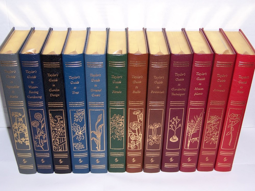 Cover all the kinds of plants... Easton Press TAYLOR'S GUIDE TO GARDENING in 12 volumes Editor: Gordon P DeWolf, Jr., Ph.D.; General Consultant: Pamela Harper with endleaf map and special photography inside multi-color uniform leather binding, measured by 4 1/2" x 8 3/4" out-of-print, do not miss out this good deal Copyright by The Easton Press hubbed spine, bound in premium full leathers distinctive cover design, beautiful illustrations handsome, readable typefaces, permanent satin ribbon page marker elegant gilded page edges, endsheets of rich moire fabric thread-sewn pages for durability and strength, long-lasting high quality, acid-neutral paper LIST OF TITLES: a complete series in 12 volumes: Annuals Bulbs Garden Design Ground Covers, Vines & Grasses Houseplants Perennials Roses Shrubs Gardening Techniques Trees Vegetables & Herbs Water-Saving Gardening CONDITION DESCRIPTION: Like new and unread condition, binding is tight and gold page edging still shiny, beautiful bright endleaves and satin ribbon page marker. This set could be a precious addition to your family library. SHIPPING / HANDLING: Book(s) will be handled/packed very safely, and shipped via USPS media mail with delivery confirmation. helvetica">