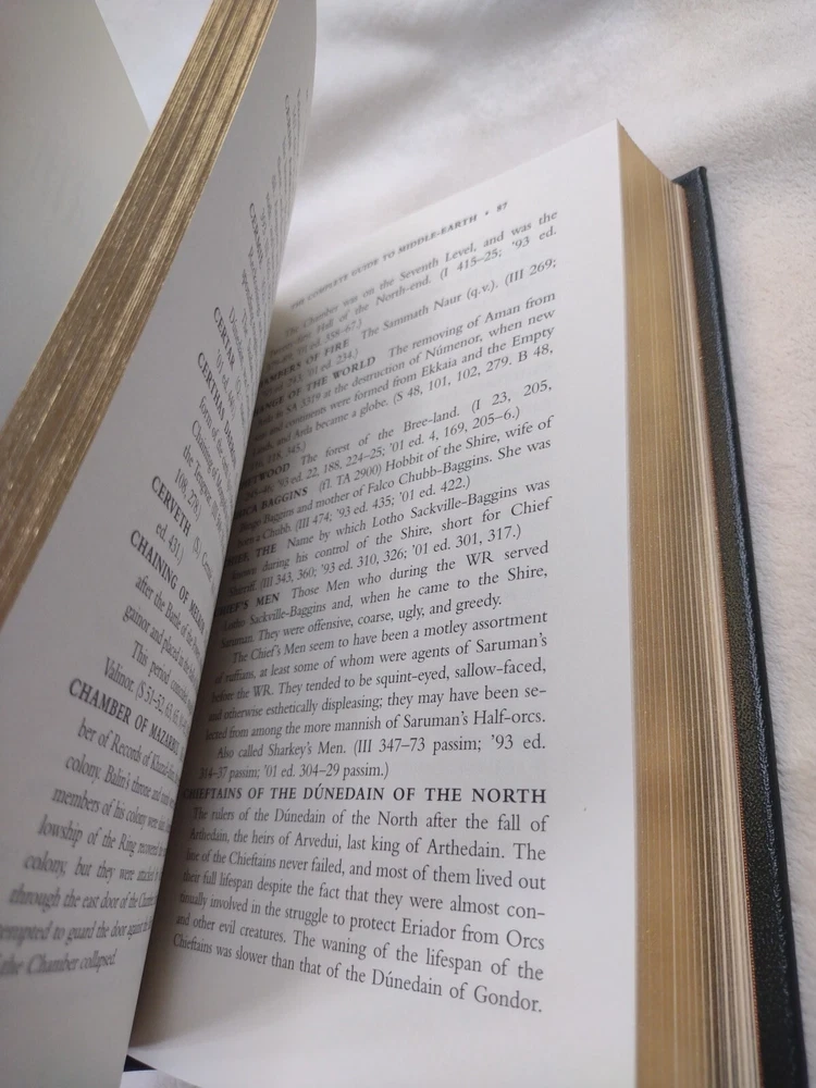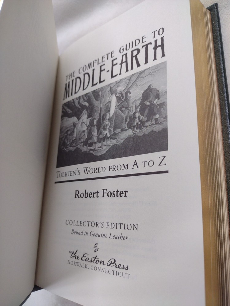 Easton Press The Complete Guide to Middle-Earth by Robert Foster - Reference guide for JRR Tolkien's Novels, Leather Bound (pine green), Collector's Edition measuring 8-3/4" x 6-1/4" x 2" ~ Moire End Pages ~ Ribbon Page Marker ~ Hubbed Spine ~ Gilt Page Edges ~ As new. Book appears to have not yet been cracked open! Great find! Will be bubble wrapped and mailed in sturdy box. Free Ground Advantage S hipping! Signature upon arrival may be required. *Please also view our many other great Easton Press and other special book listings!