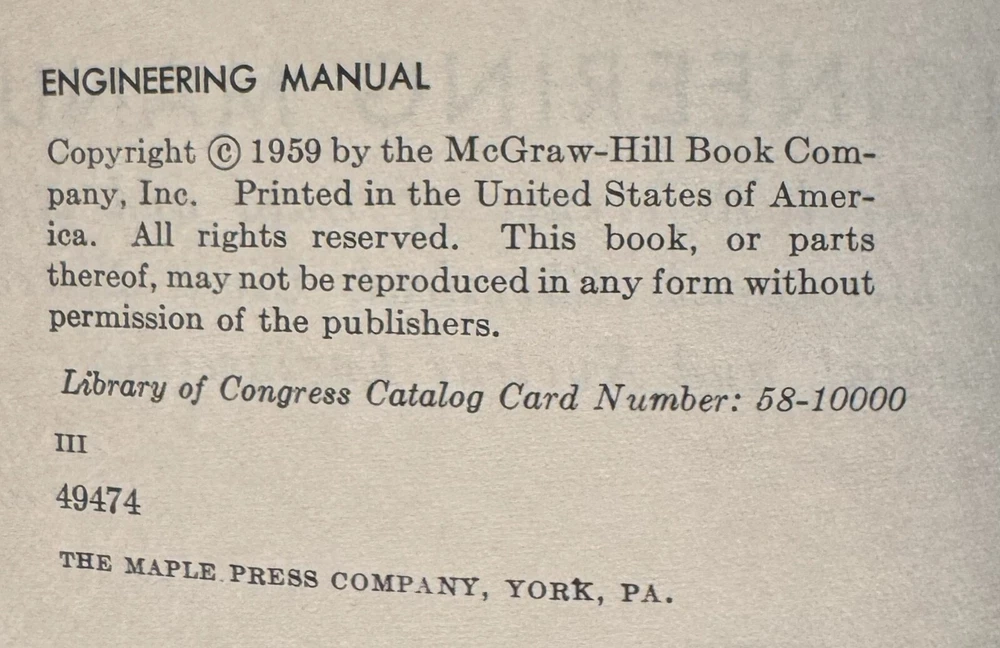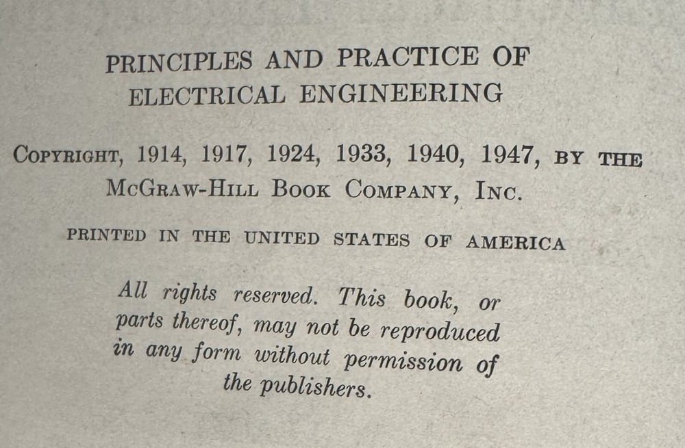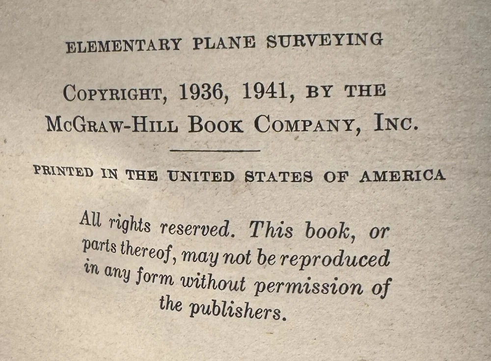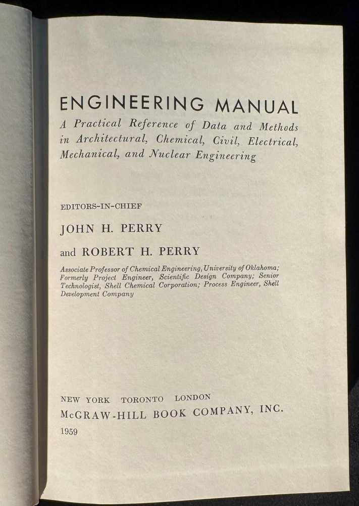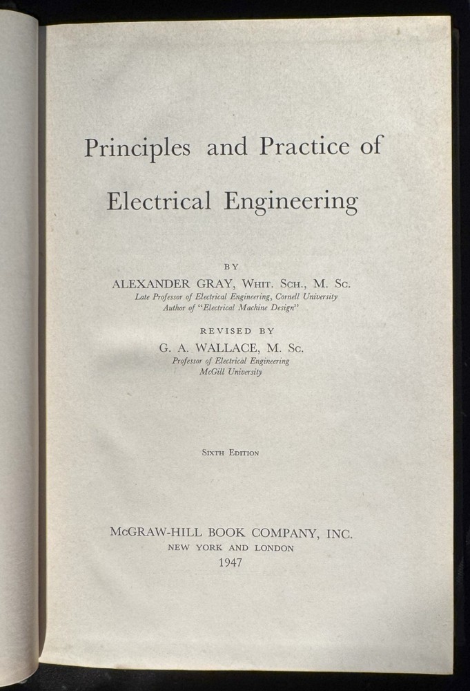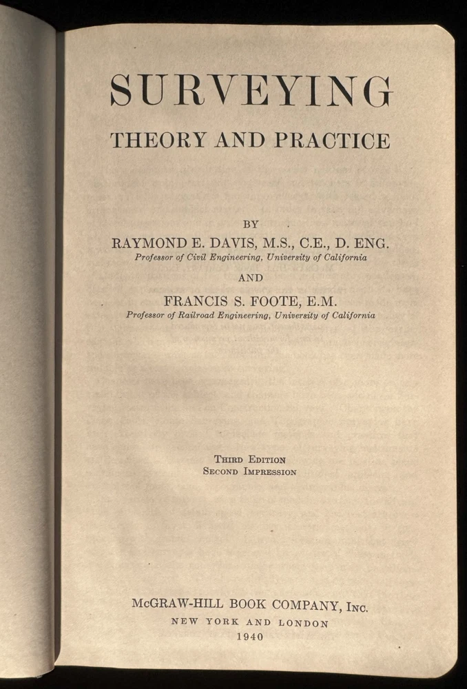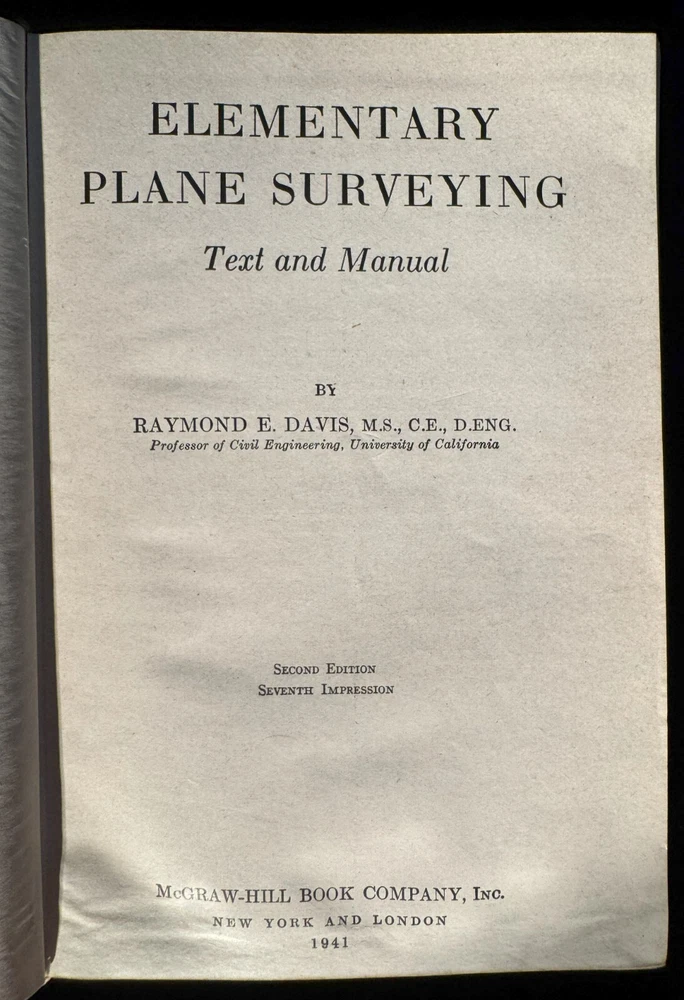 Lot Contains: Principles and Practice of Electrical Engineering 1947 6th Edition by Alexander Gray NFPA Handbook of the National Electrical Code 1966 1st Edition by Frank Stetka and Merwin M. Brandon Engineering Manual - A practical Reference of Data and Methods in Architectural, Chemical, Civil, Electrical, Mechanical, and Nuclear Engineering 1959 1st Edition by John H. Perry and Robert H. Perry Elementary Plane Surveying 1941 by Raymond E. Davis w/fold-outs Surveying Theory and Practice 1940 by Raymond E. Davis and Francis S. Foote w/color maps.