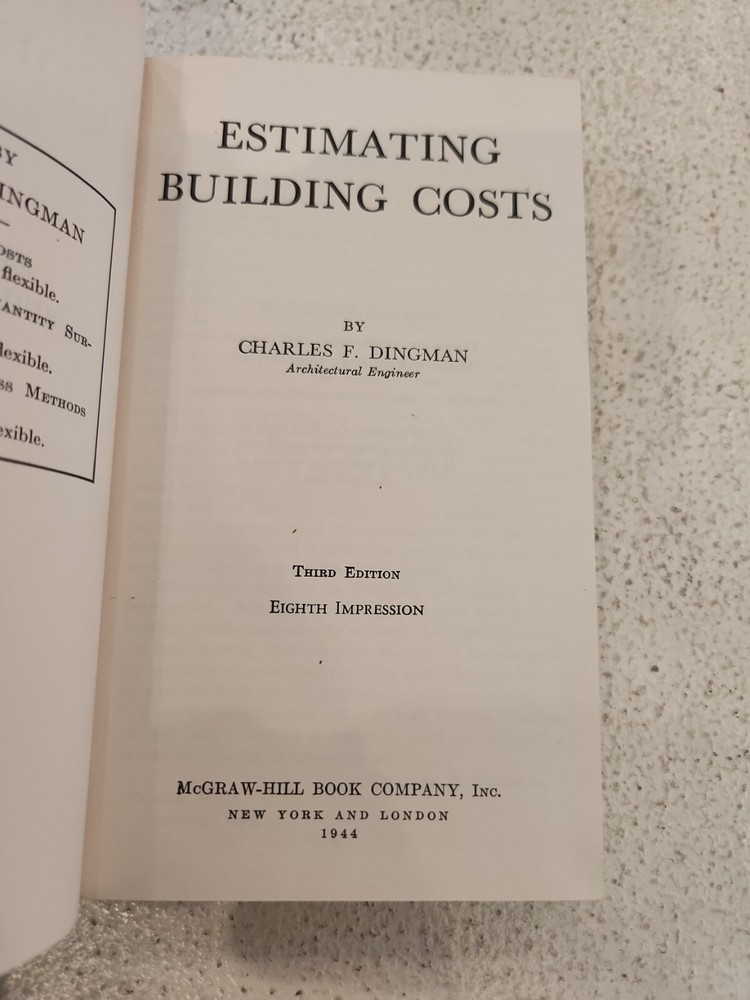 Estimating Building Costs Charles F. Dingman Nice Condition RARE 1944. $4.99 Shipping...