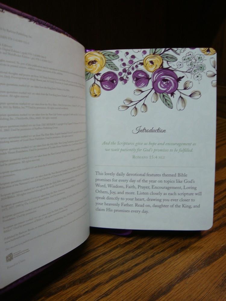 This devotional book is a wonderful addition to any woman's collection. With a soft faux leather cover and 384 pages, it is perfect for everyday use. The book features promises from the Bible that are specific to women's issues, making it an inspiring read for anyone looking to grow in their Christian life. The book is written in English and has a faux leather format, measuring 6 inches in length and 4.4 inches in width, with a height of 1.2 inches. It was published in 2016 by Barbour Publishing, Incorporated, and is suitable for both young adults and adults. The book is not personalized or signed, but it is a great gift for anyone who loves Christian life and personal growth.