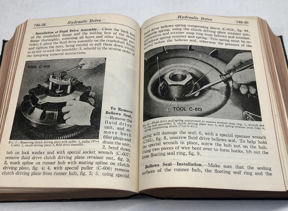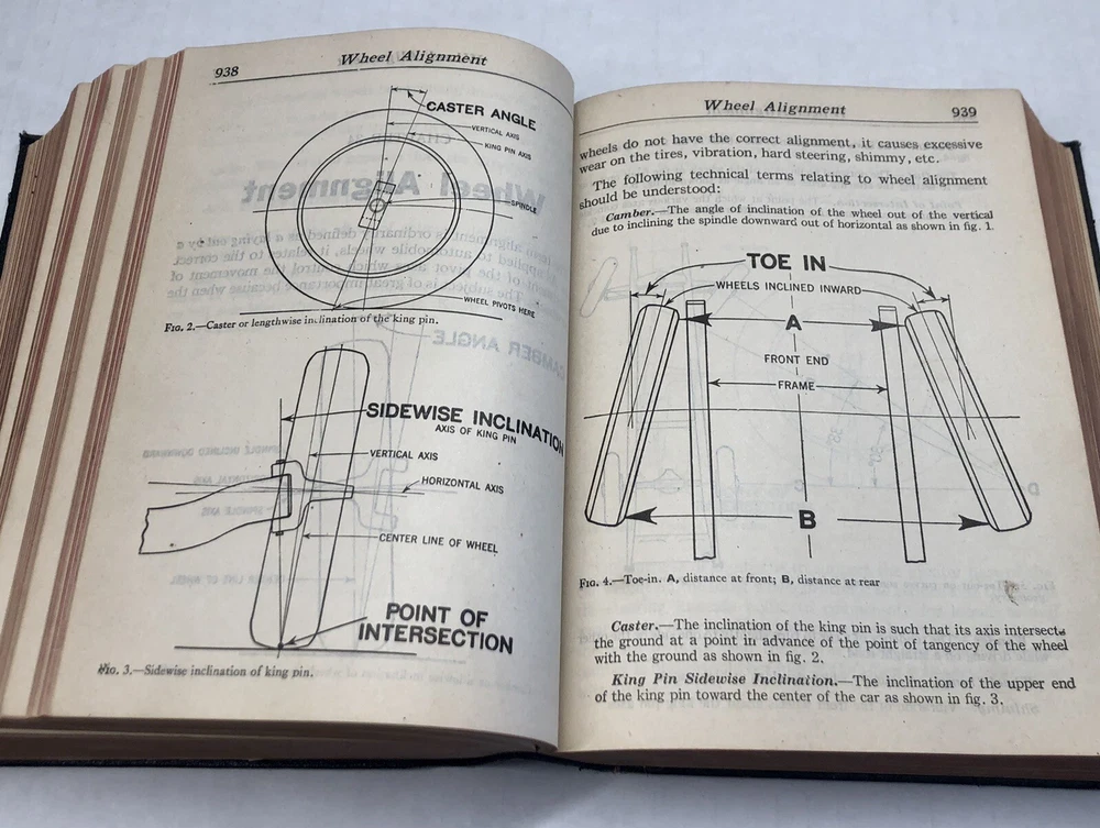 Vintage Condition 1947 Audels New Automobile Guide for Mechanics Operators and Servicemen. Soft leather cover, shows minimal wear. Spine and binding in exc. condition. Book is 5" x 6 3/4". Total 1607 pages.Book is full of Diagrams, photos, drawings and packed with information. Inside front cover lining has separated from cover and small pencil mark on top right of page. There is small tear on top of copyright page. Please see All photos for Condition.