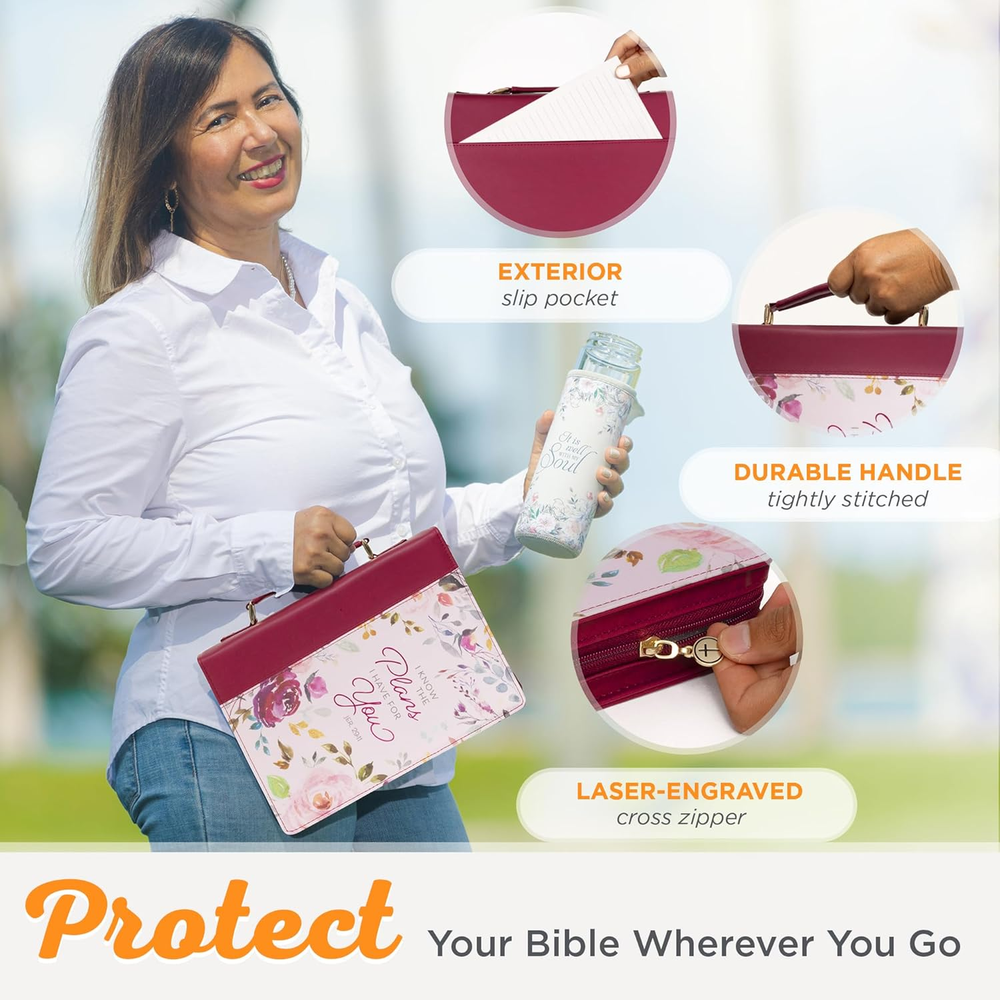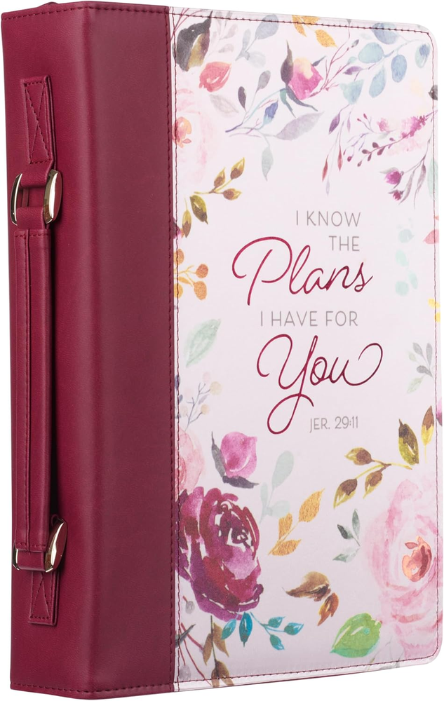 Menu Other Items Feedbacks About Us Contact Us Add To Favorites Fashion Bible Cover I Know the Plans Floral Jeremiah 29:11 Faux Leather, Pink/Plum, Large Durable: Protect your Bible from life’s mishaps with this plum floral fashion Bible cover for women made from sturdy faux leather material that is easy to clean and will withstand daily wear. Scripture Bible Case: This stylish deep plum-colored faux leather back panel meets silky blush-pink floral front panel case features scripture sentiment "I Know the Plans I Have for You" from Jeremiah 29:11 and is printed in a two-font, two-tone gray and plum design. Medium, Large Size: Note that Amazon specifications are exterior Bible cover dimensions. To ensure best fit measure Bible precisely & compare to size chart. Allow extra room to avoid a too snug fit. Convenient Accessories: The handle is easy to hold, and a faux leather lay-flat.The zipper pull features an engraved cross. Two convenient pen loops inside the case keep all your note-taking ready and an exterior slip pocket on the back cover. Easy travel to church or Bible Study. Laser Engraved Secure Zipper Closure: Ensures your Bible stays clean and safe inside. Slip your loose notes, bulletins, or tissues inside for easy storage. This encouraging, motivational cover is a lovely gift for that special woman in your life whether she be a professional, teacher, church leader, mom, sister or daughter. Product Description The Plans I Have for You Plum Floral Faux Leather Fashion Bible Cover – Jeremiah 29:11 Protect your Bible with The Plans I Have for You Plum Floral Faux Leather Fashion Bible Cover and be encouraged by its message every time you open it to spend time in God's Word. A deep plum-colored faux leather back panel wraps around the spine of the Bible case to meet a silky blush-pink front panel where an array of rich-toned flowers and leaves spray across the design. The sentiment is printed in a two-font, two-tone gray and plum design and placed right at the center. I know the plans I have for you. - Jeremiah 29:11 The spine holds a faux leather lay-flat handle, attached by gold-toned metal hardware that match the circular zipper pull. The zipper pull features an engraved cross. An exterior slip pocket on the back cover is useful for storing loose notes, and two convenient pen loops sit right inside the case, so you can keep all your note-taking supplies at the ready. This Bible cover is available in two sizes: medium and large. Please refer to the last image in the image carousel on the left for the Bible Cover Sizing Chart before you make a selection. This faux leather Bible cover is part of The Plans I Have for You Plum Floral Collection , that also includes a ceramic mug, gift bag, and wirebound journal. Give this Bible case as a thoughtful gift to a young woman headed off to college or a new mom to assure her that God will lovingly protect her as she walks into this new season of life. The Plans I Have for You Plum Floral Faux Leather Fashion Bible Cover will protect your Bible and its message will guard your mind against doubt. Pink floral design on front cover The Plans I Have for You Plum Floral Collection The plans I have for you. - Jeremiah 29:11 Fashion Bible cover Two-tone design Deep plum faux leather back panel Lay-flat carry handle with gold metal hardware Exterior slip pocket Cross-engraved zipper pull 2 pen loops Available in medium and large Refer to Image Carousel for Bible Cover Sizing Chart Christian Gifts Designed in House Merging Scripture with contemporary design to create gifts for all occasions Christian Art Gifts' motto is faith, hope and love and our purpose is to celebrate what is good, true and beautiful through the products we create. Our unique line of gifts offer countless ways to affirm a friendship, encourage a loved one, congratulate a success, love a neighbor or remind someone of their faith. BIBLES Classic KJV Text Various Sizes & Features Journaling Bibles (ESV & KJV) Study Bibles Children's Bibles Family Bible BIBLE COVERS Classic Covers Fashion Covers Canvas Covers Bible Tote Bags GIFT BOOKS Devotionals Prayer Books Promise Books Children's Books Baby Memory Books STATIONERY Journals Notebooks Gift Bags Guest Books Pens COLORING PRODUCTS Coloring Books Coloring Cards Creative Journaling Bibles Coloring Pencils Washi Tape Bible Tabs & Stickers Bible Journaling Kits HOME & KITCHEN Water Bottles Mugs Mug Sets Teapots & Sets Wall Art Throw Pillows Kitchen Accessories JEWELRY & ACCESSORIES Checkbook Covers ID Holders Men's Wallets Men's Rings Jewelry Keychains Trinket Trays Tote Bags Zippered Pouches BOOKMARKS Faux Leather Bookmarks Premium Cardstock Bookmarks Pass Around Cross Bookmarks SCRIPTURE CARDS Pocket Size Boxes of Blessings Conversation Starters Promise & Prayer Cards Themes for Everyone! COLLECTIONS Coordinating Scripture Themes & Designs GIFT SETS FOR EVERYONE Teachers Students Men Women Moms Dads Grandparents UNDATED & DATED PLANNERS Executive Style Planners Faux Leather Planners Wirebound Planners Pocket Size Planners Planner Pads for Teachers Perpetual Calendars Item Specification Item model number BBL716 Closure Type Zipper Number of Items 1 Color Pink/Plum Pattern Floral Product Dimensions 2.2 x 8.1 x 10.9 inches Material Faux Leather Material Type Faux Leather Manufacturer Part Number BBL716 Item Weight 9.3 ounces Size Large Dimensions Shipping Returns Additional Info Product Dimensions: 8.1 inches x 2.2 inches x 10.9 inches. Weight: 9.3 oz Fast shipping is very important for us. Our standard shipping service is FREE. Your order will be shipped within 1-3 business days upon full payment received. Most items are delivered within 3-5 business days, however, please allow 3-10 business days. We are shipping only to USA. We only ship to the confirmed Paypal address. We reserve the right to cancel any order for any reason at any time. We are not responsible for undeliverable addresses. We offer a 30 day return policy from checkout 