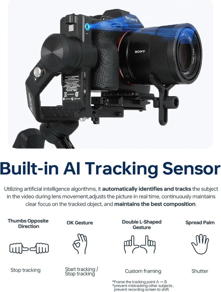 FeiyuTech SCORP MINI-2 3-Axis Gimbal Stabilizer with AI Tracking – NEW Enhance your videography with the FeiyuTech SCORP MINI-2, a compact and versatile 3-axis gimbal stabilizer designed for smartphones, mirrorless, and DSLR cameras. Featuring advanced AI tracking and a lightweight design, it’s perfect for creators on the move. Key Features: • 3-Axis Stabilization for smooth footage • AI Tracking with gesture control • Compatible with various devices  • Lightweight and portable design Included: • SCORP MINI-2 Gimbal • Charging Cable • Mounting Accessories • User Manual