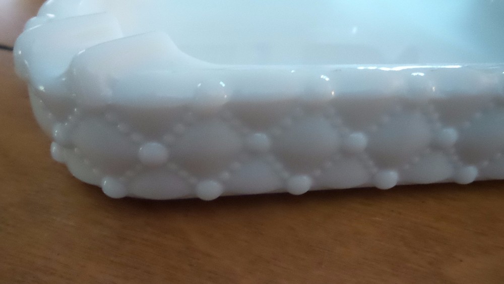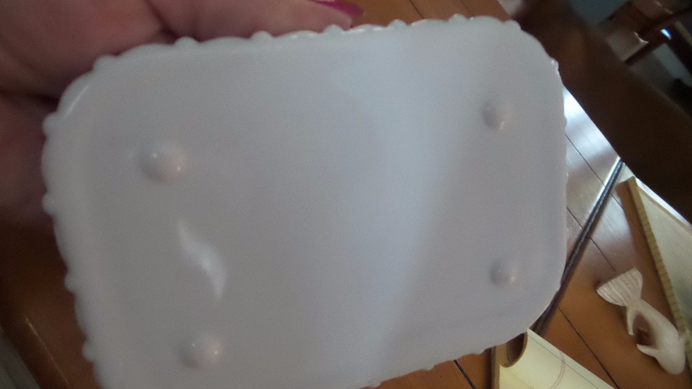 Fenton or Westmoreland Milk Glass Ashtray Rectangular shape 5-1/2” x 4” and 1” tall. Has dot and criss cross pattern. No chips or cracks....