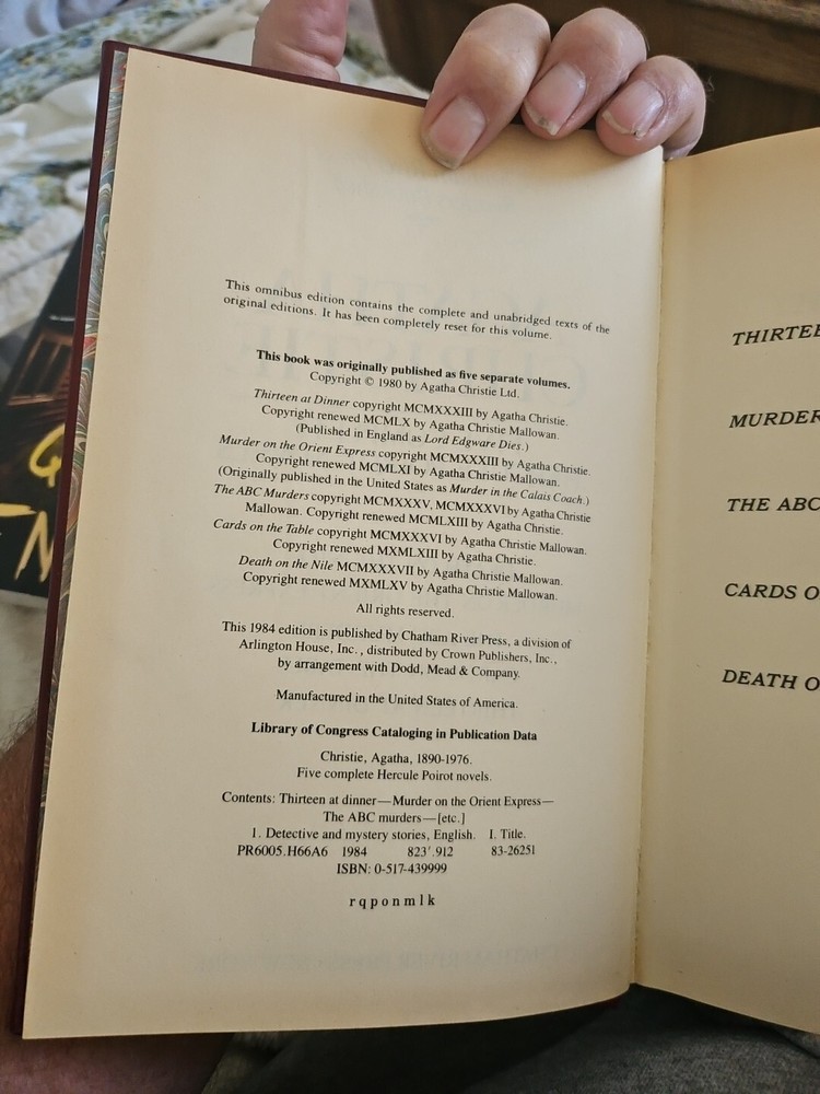 This limited edition five-novel anthology features the beloved Hercule Poirot Detective Series by Agatha Christie. The hardcover format is genuine bonded leather and includes gilt page blocks. The books are complete and unabridged, making them perfect for young adults and adults who love mystery and detective fiction. The novels are written in English and were published in 1984 by Random House Value Publishing and Outlet Book Company. The book series is perfect for collectors and fans of the genre. This item weighs 20 oz and has 663 pages. It is a non-classifiable and fiction genre, with topics covering mystery and detective, collections and anthologies, and private investigators.