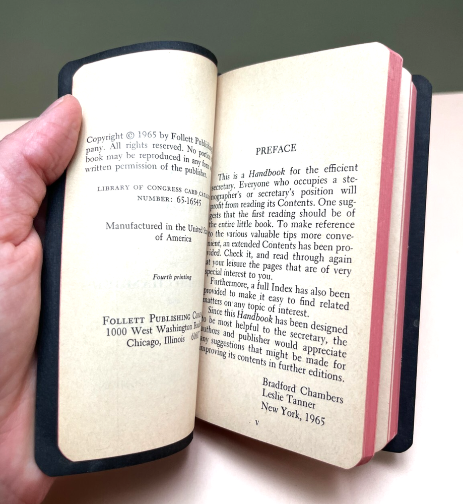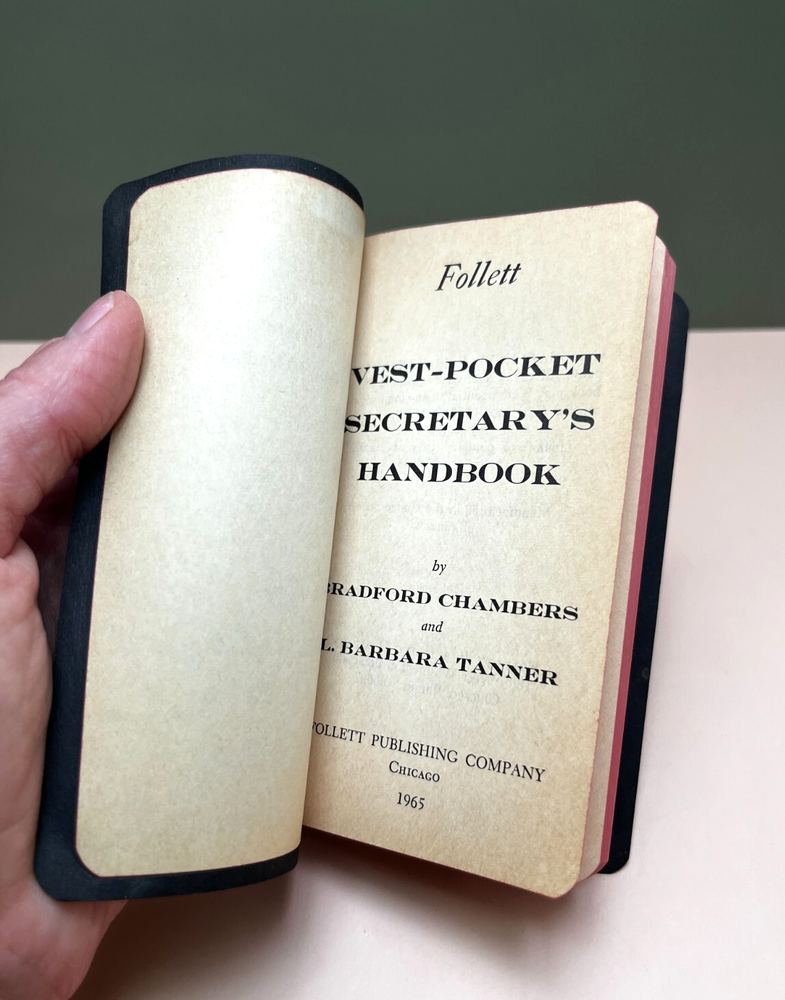 Compact secretary's handbook published by Follett in 1965. Reference for shorthand, grammar, and etiquette. Pocket-sized. • Publisher: Follett • Year: 1965 • Type: Reference pocketbook