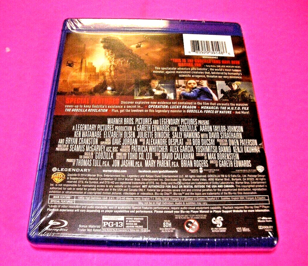 Up for bid/purchase: GODZILLA - BLU-RAY - 2014 - FOUR LANGUAGES - FACTORY SEALED - BRAND NEW - UPC NUMBER IS DIFFERENT THAN OTHERS LISTED. Should you have any questions, or wish additional pictures, do not hesitate to contact. NOTE: I purchase all of my items at auctions, estate sales and flea markets and cannot be sure of their history or whether they've come from smoke-free or pet-free homes. I do my best to list any damage or use, but I'm not an expert. So if there's something specific you need to know before bidding/buying, please ask. Thank you for understanding. PAYMENT MUST BE MADE WITHIN FOUR DAYS OF SALE TO PAYPAL. If an OFFER is made and ACCEPTED, PAYMENT IS DUE IMMEDIATELY (I have been stuck too many times). Shipping combined for multiple purchases. Please visit my store for other items . Thanks for looking !