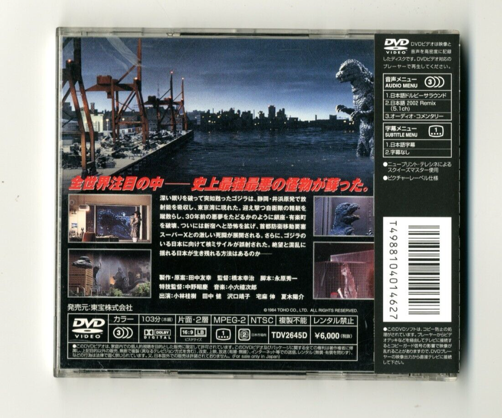 ■ DESCRIPTION ●Condition LIKE NEW OBI ● Not English voice ●Time: 103 minutes ●Color ● Special features ● Making of "Godzilla 1984" (Composition: Koichi Kawakita) ●Special features and theatrical trailers ●Documentation of the film's theatrical release ● Audio bonus Audio Commentary: Akira Takarada ●BGM track (music only) ●ME track (music + sound effects only) ● 16:9 LB Vista ■ SHIPPING We will deliver it carefully using packing materials. ● Standard international shipping: DHL (within 1 week from shipping) USA, Canada, Australia, etc. If you would like to know the number of days of arrival in another country, please contact us. ■ Please note These charges are the buyer's responsibility. Please check with your country's customs office to determine what these additional costs will be prior to bidding or buying. Customs fess are normally charged by the shipping company or collected when you pick the item up. These fees are not additional shipping charges.