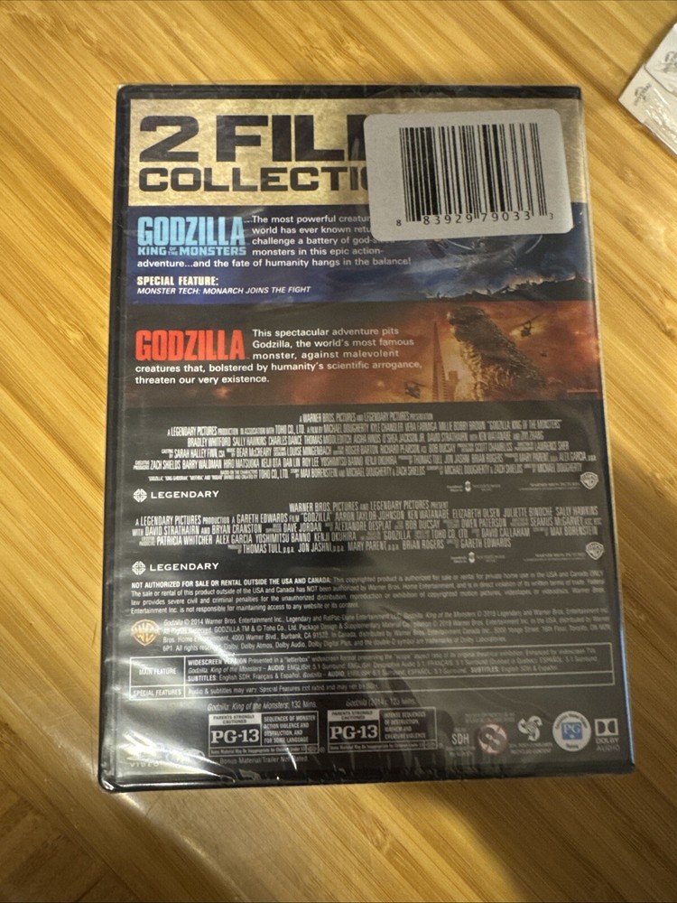 The "Godzilla 2 Film Collection" is a DVD set featuring two movies in the Horror genre: "Godzilla." The DVD is in NTSC format with English language and subtitles. It is a standard edition from Warner Home Video, in a tall/DVD case. It is rated NR and does not appear to be a former rental. The region code is DVD: 1 (US, Canada).