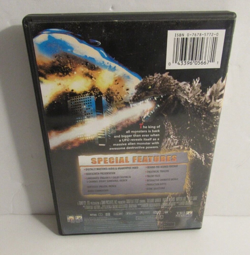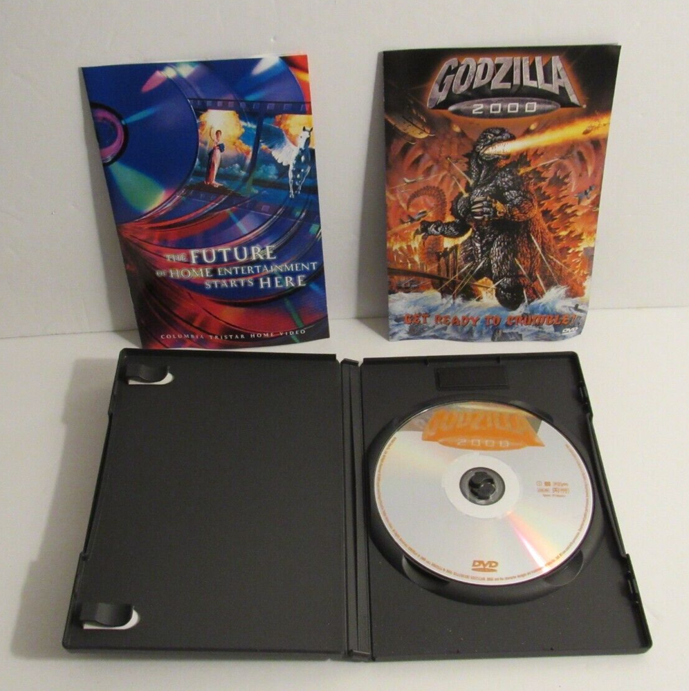 GODZILLA 2000 (DVD, 2000) Takehiro Murata , Hiroshi Abe and Naomi Nishida NICE Adult owned and watched maybe one or two times. Disk is super clean with no scratches or wear. Packaging may have minor storage wear and inserts have some waves from being stored. Please see pictures for better details.