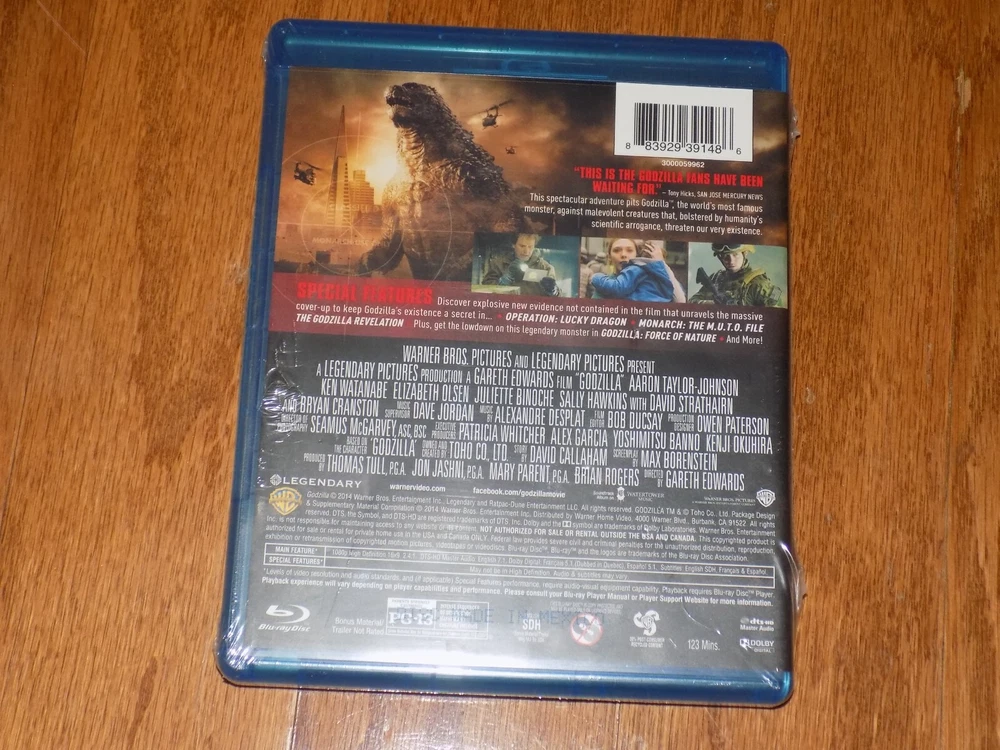 THIS IS AN UPDATE TO ALL MY CURRENT LISTINGS. -UNFORTUNATLEY, I SUFFERED A STROKE AND I AM RELYING ON MY FAMILY TO FIND, PACK AND SHIP THE INVENTORY. I FORMERLY HANDLED THE INVENTORY LOCATION BY MEMORY, AND YET HAVE NOT FOUND A WAY FOR THEM TO READ MY MIND. WE ALL WILL ENDEVOR TO LOCATE AND SHIP OUT AS FAST AS POSSIBLE. PLEASE BE GRACIOUS TO US DURING THIS PERIOD AS THERE IS NO POSITIVE CERTAINTY OF INVENTORY LOCATIONS. IF WE ARE EXPERIENCING DIFFICULTY FINDING YOUR PRODUCT, WE WILL COMMUNICATE VIA EBAY MESSAGES IN A TIMELY MANNER. IF WE CANNOT FIND THE PRODUCT YOU WILL RECEIVE A FULL REFUND. THANK YOU FOR UNDERSTANDING AND PLEASE CONSIDER THIS ISSUE BEFORE MAKING A PURCHASE. This Blu-ray disc contains the 2014 American science fiction monster film "Godzilla". It features a PG-13 rating and English audio with optional English subtitles. Directed by Gareth Edwards, the film stars Aaron Taylor Johnson, Ken Watanabe, and Elizabeth Olsen. The Blu-ray edition includes bonus features such as commentary, additional scenes, and behind the scenes featurettes. The aspect ratio is 16:9 and the disc is formatted for Blu-ray players with a region code of A (Americas, Southeast Asia...). This is a must-have for fans of action and sci-fi/fantasy genres, and those who enjoy creature/monster and disaster sub-genres. NEW AND SEALED - SMALL SHELVING DING TO FRONT AS PICTURED. Shipping via U.S. Postal Media Mail is $4.95 and includes Postal Tracking. Thanks for looking!