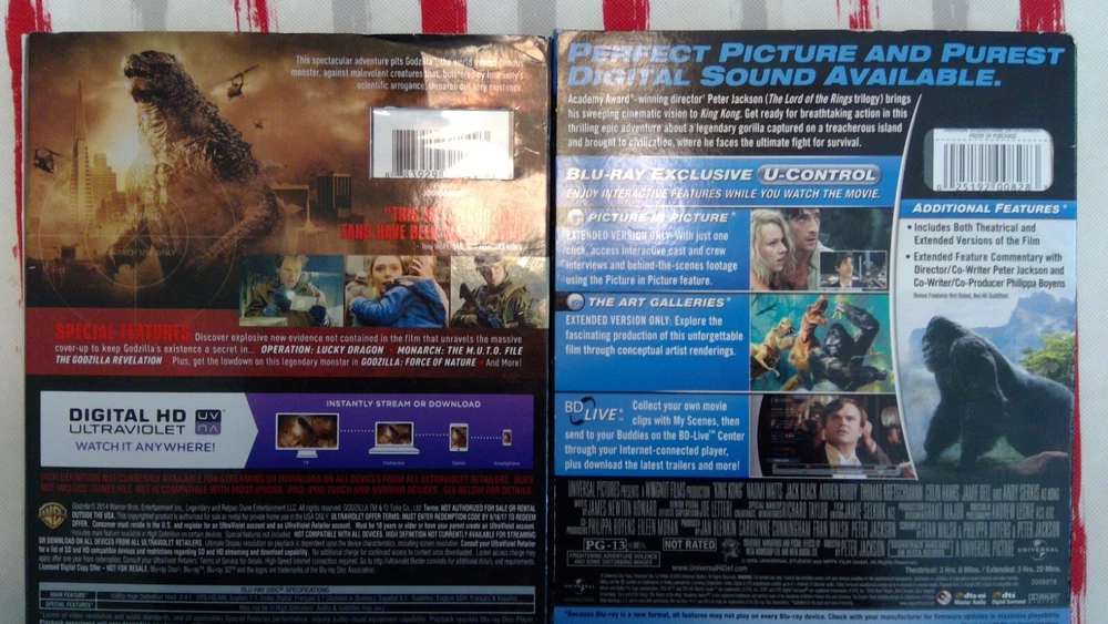 GODZILLA (2014) BLU RAY + DVD + DIGITAL HD + KING KONG (2003) HI DEF BLU RAY....