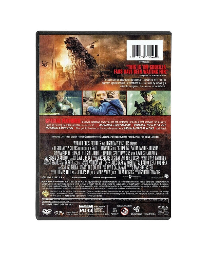 LEGENDARY PICTURES, WARNER BROTHERS HOME ENTERTAINMENT DVD INCLUDES BONUS (SPECIAL FEATURES) DISC "GODZILLA" DVD released in 2014 Movie released in 2014 REGION 1 Used (see item description), Widescreen English, French, Spanish language English, French, Spanish subtitles Includes featurettes, trailers and more Directed by GARETH EDWARDS Starring BRYAN CRANSTON, AARON TAYLOR-JOHNSON, ELIZABETH OLSEN PLOT SYNOPSIS: The world's most revered monster is reborn as visionary new director Gareth Edwards (Monsters) unleashes the epic action-adventure GODZILLA. Starring an international ensemble cast led by Aaron Taylor-Johnson, Ken Watanabe (The Last Samurai, Inception), Elizabeth Olsen, Juliette Binoche (The English Patient) and Sally Hawkins (Blue Jasmine) with David Strathairn (Good Night, and Good Luck.) and Breaking Bad's Bryan Cranston. GODZILLA is a powerful story of human courage and reconciliation in the face of titanic forces of nature -- when the awe-inspiring creature rises to restore balance as humanity stands defenseless. This spectacular adventure pits the world's most famous monster against malevolent creatures that, bolstered by humanity's scientific arrogance, threaten our very existence. Check out our other items ! IMPORTANT!!!! Please read the following: WE GLADLY COMBINE SHIPPING COSTS ON ALL E-BAY PURCHASES. PLEASE E-MAIL WITH ANY QUESTIONS. ANY AND ALL INTERNATIONAL BIDDERS MUST E-MAIL BEFORE AUCTION'S END REGARDING SHIPPING COSTS OUTSIDE OF THE UNITED STATES, AS SHIPPING RATES WILL VARY. Due to people not leaving feedback! we will be leaving feedback only upon receipt of feedback. Sorry for this action and thanks for your understanding. Thank you for looking. Any and all eBay auction sales to be paid for in full within SEVEN days of the auction's end. Other arrangements regarding payment to be authorized by the seller (that's me!) only after e-mail notification and at my discretion. I gladly combine shipping costs for multiple auctions wins and will ship worldwide. Shipping costs outside of the U.S. to be provided after the auction's end and/or after the buyer has contacted me via e-mail. I value positive feedback regarding all transactions and leave FEEDBACK after every sale. I expect the buyer to do the same. Bidding on any item on EBAY constitutes a contract to buy that item, so only serious buyers are encouraged. If for any reason payment is not made for the final sale and/or in a timely fashion agreed upon, I as the seller reserve the right to relist the item, and feedback for the transaction will reflect that fact. Thank you, and Happy eBaying!!!