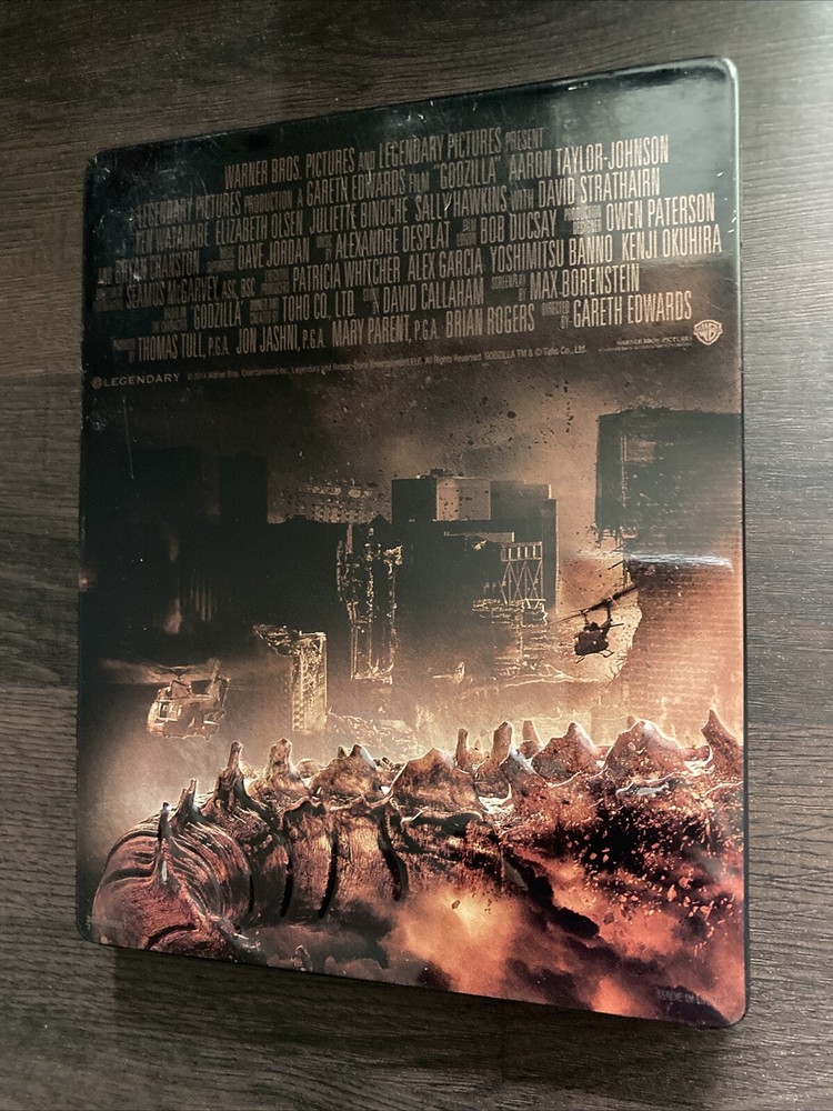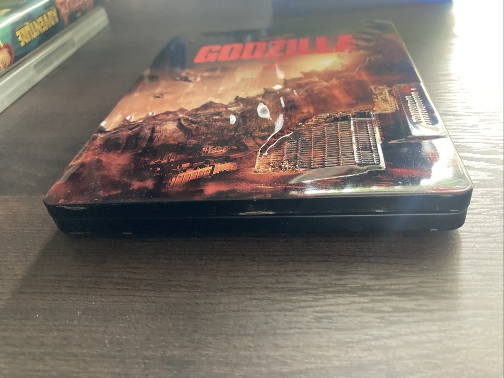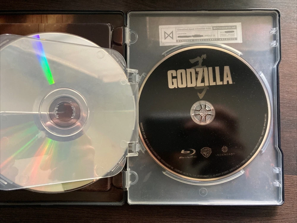 Also starring Brian Cranston! The steelbook no longer roars when the button is pressed. There are some scratches/scuffs (see pictures). Both clasps snap shut. Both discs look great.