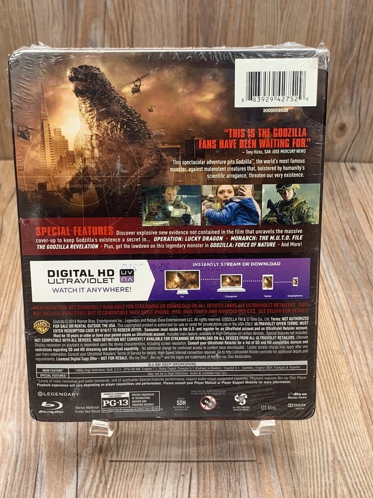 This listing is for a brand new and sealed copy of Godzilla Steelbook on Blu-Ray. This Blu-Ray is still brand new and sealed in its original shrink wrap and has never been opened or used before. Although it’s brand new there might be some minor signs of storage wear including rips, tears, stickers and other minor issues. The disc inside is still in place and not floating around. The item in the pictures is the actual item being sold so what you see is what you’ll get. Thanks for looking!