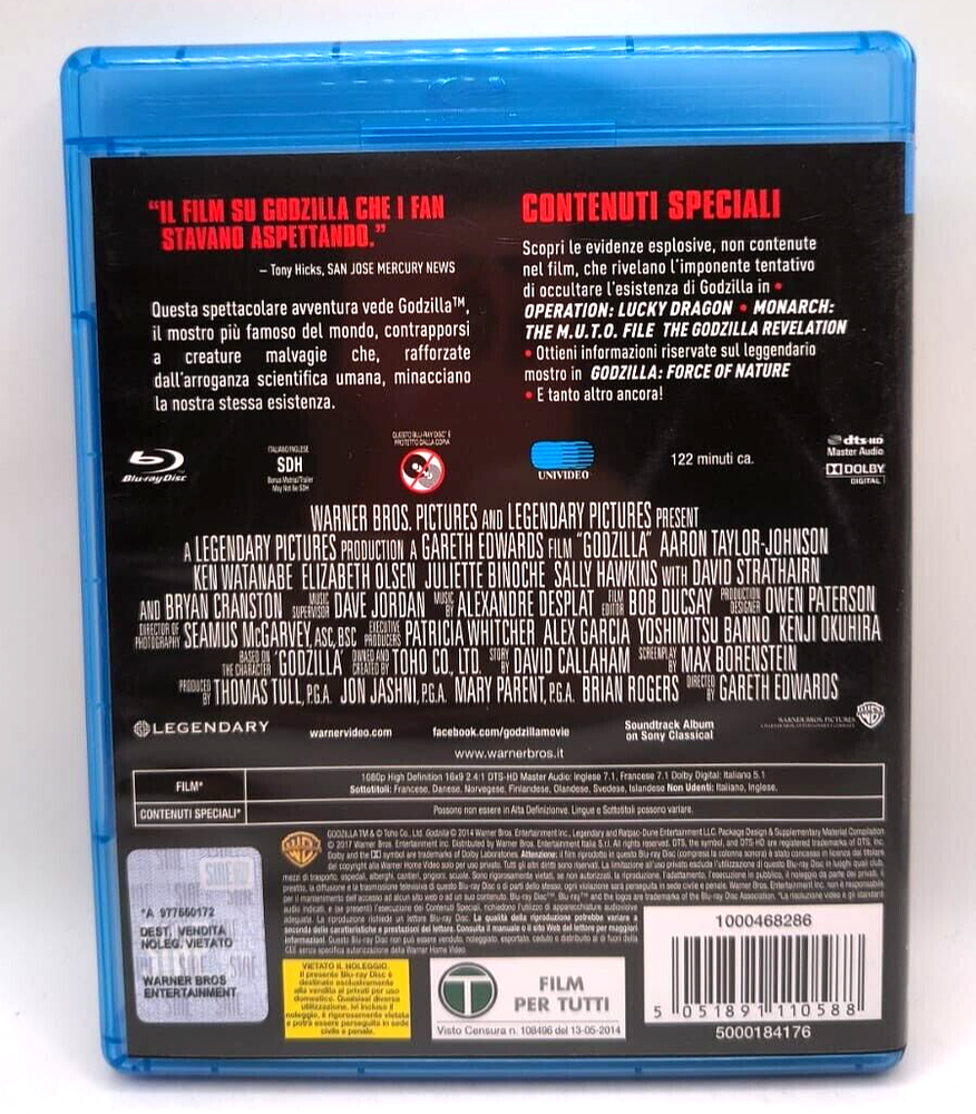Godzilla - Blu-Ray The description of this item has been automatically translated. If you have any questions, please feel free to contact us. ORIGINAL PRODUCTS ONLY Shipping methods Shipments " Free "They are carried out with the postal service" Folds of books ". Unpaid package , delivery of 3-10 working. Before leaving a negative comment or open a dispute contact us , Thank you. Pre and post sales assistance: For any questions or clarification you can contact me directly at the N. 3664858801 or 3389300025 (WhatsApp or call) We are a vintage shop with registered office in Marche in Macerata, under the name "Bong Store". ORIGINAL PRODUCTS ONLY Shipping methods Shipments "Free"They are carried out with the postal service"Folds of books".Unpaid package, delivery of 3-10 working. Before leaving a negative comment or open a dispute contact us, Thank you. Pre and post sales assistance: For any questions or clarification you can contact me directly at the N. 3664858801 or 3389300025 (WhatsApp or call) We are a vintage shop with registered office in Marche in Macerata, under the name "Bong Store". Titolo Film, serie TV Godzilla Censura T Genere Fantascienza e fantasy Codice regionale DVD 2 (EUR, JPN, M EAST) Tipo Blu-ray Marca Warner Home Video Edizione anno DVD 2017 Sottogenere Catastrofico MPN Non applicabile Anno di pubblicazione 2014 Cofanetto No Formato Blu-ray EAN 5051891110588