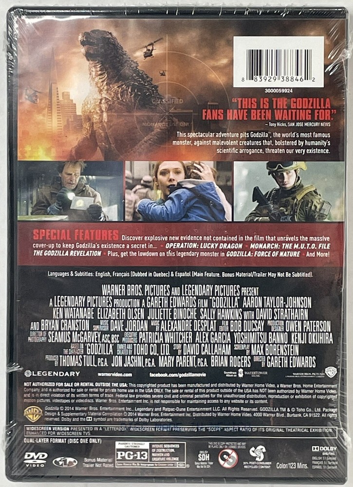 GODZILLA (DVD, 2014) Special Feature Bonus Disc Action Adventure Sci-Fi....